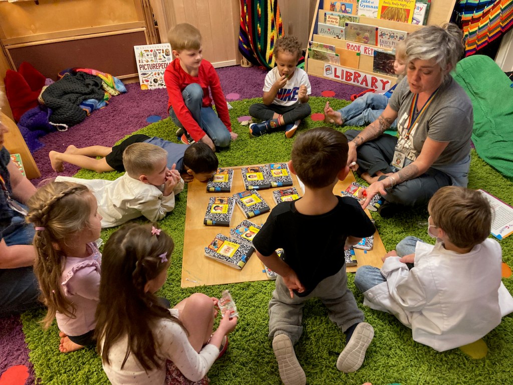 Carrots! Along with these egg free cookies, Ella also brought Ritz crackers and cucumbers. Since Everett was home sick, we thanked his cubby picture and sent a cookie back home for him.
