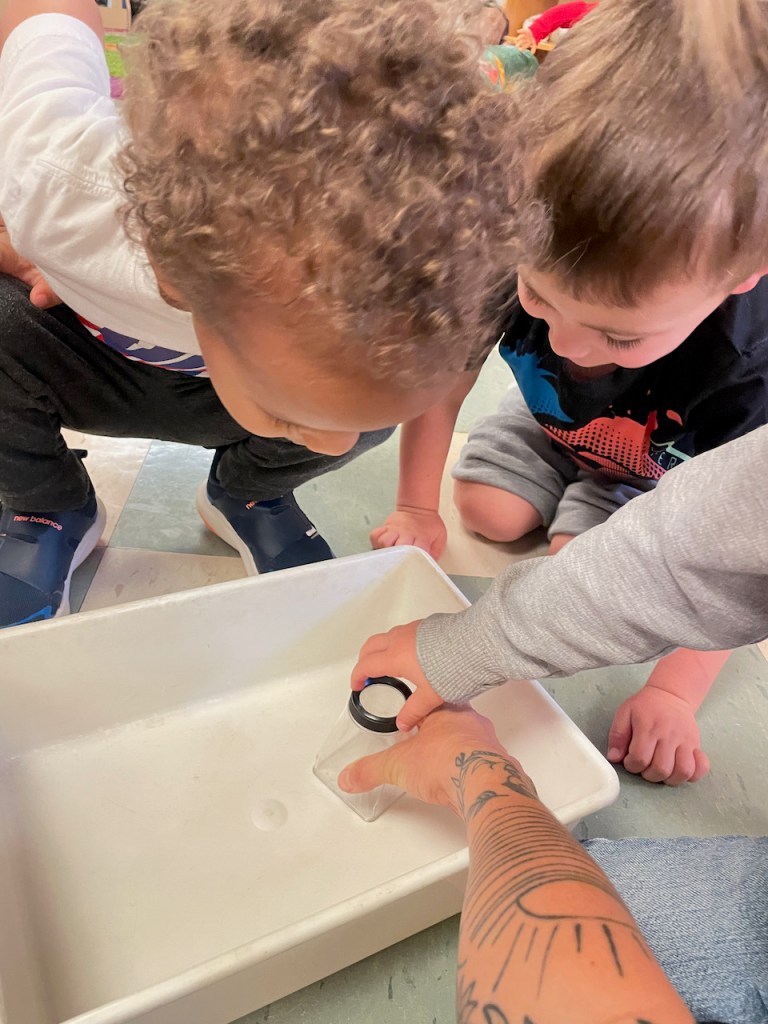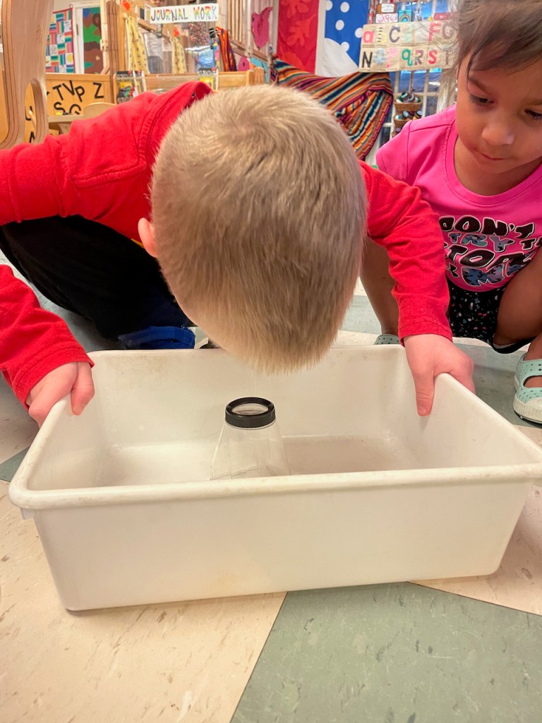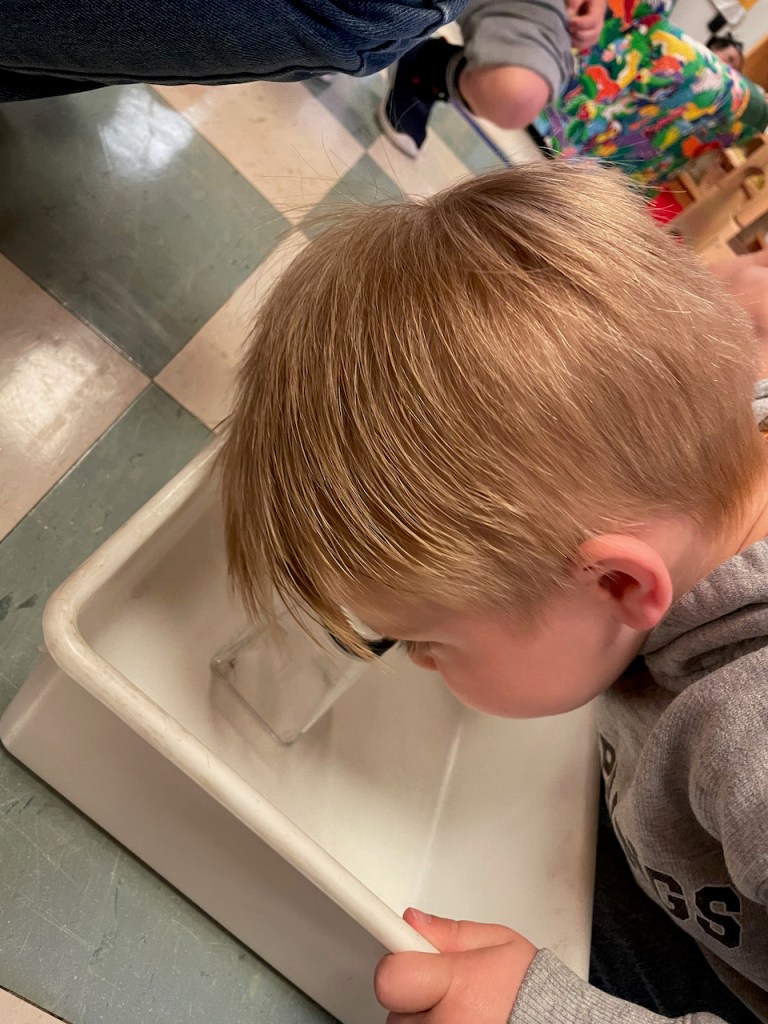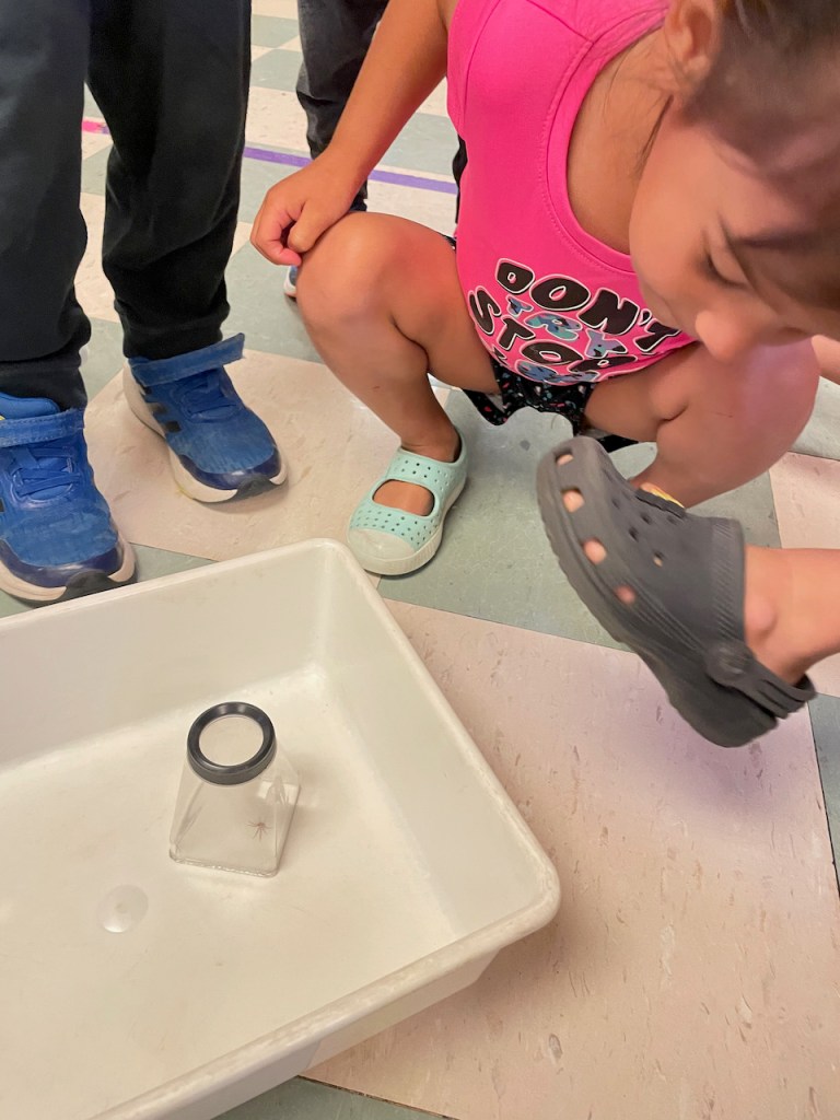 Once upon a time there was a little spider playing in the classroom. She found a smooth white tub to walk around in. All of a sudden some giant children found her. They were scared and called for a teacher. The teacher discovered she wasn’t a dangerous spider so they could safely look at her. The teacher got the special magnifying glass and they carefully put it over her. After taking turns looking at her, the teacher said she had to go live somewhere else. Where did the teacher take the spider?