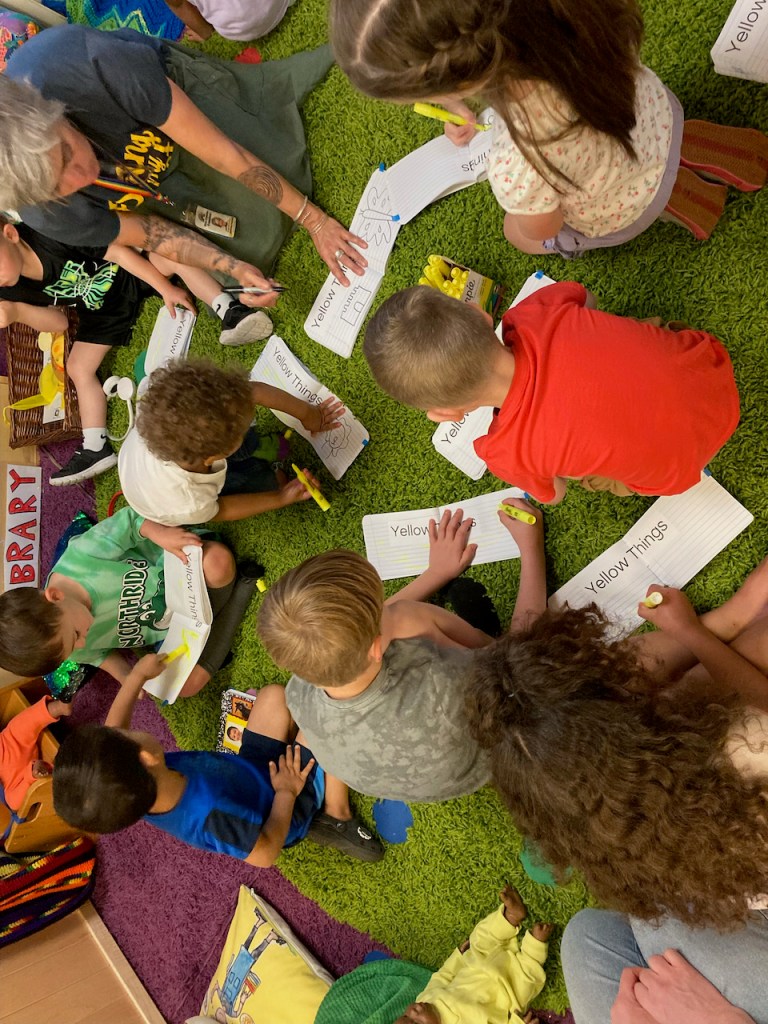 Yellow! Since it starts with the letter Y, we looked at objects of different shades of yellow and then drew more things.