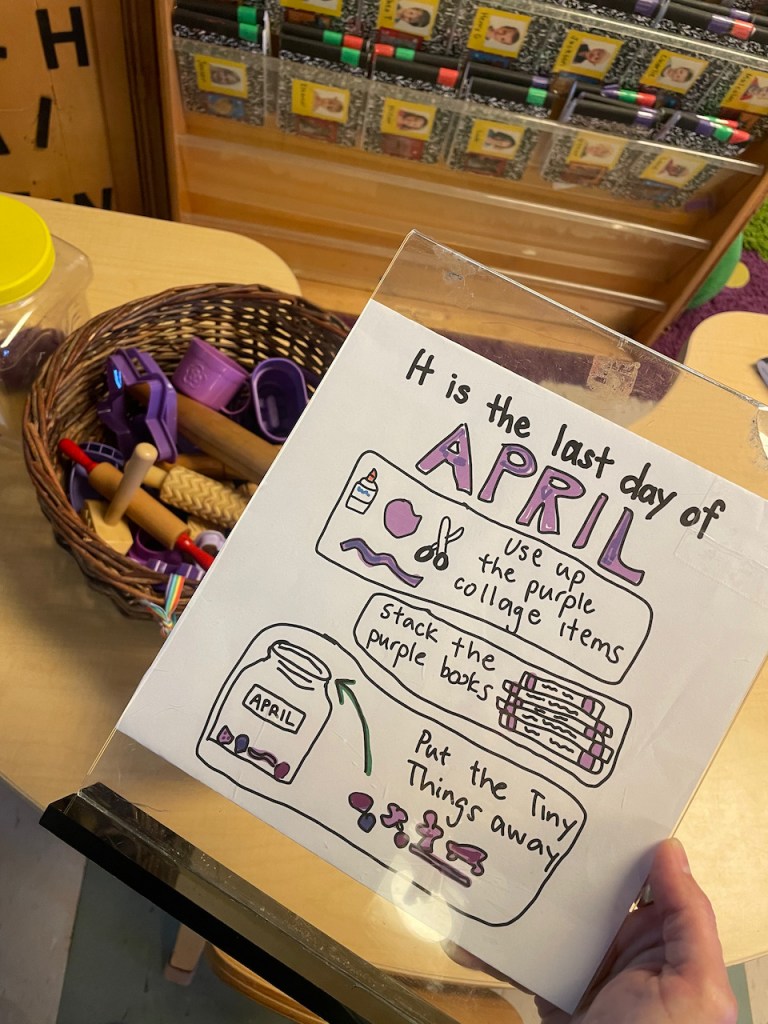 With today being the last day of April we put the purple tiny things away. Starting tomorrow, the blue things will be out!