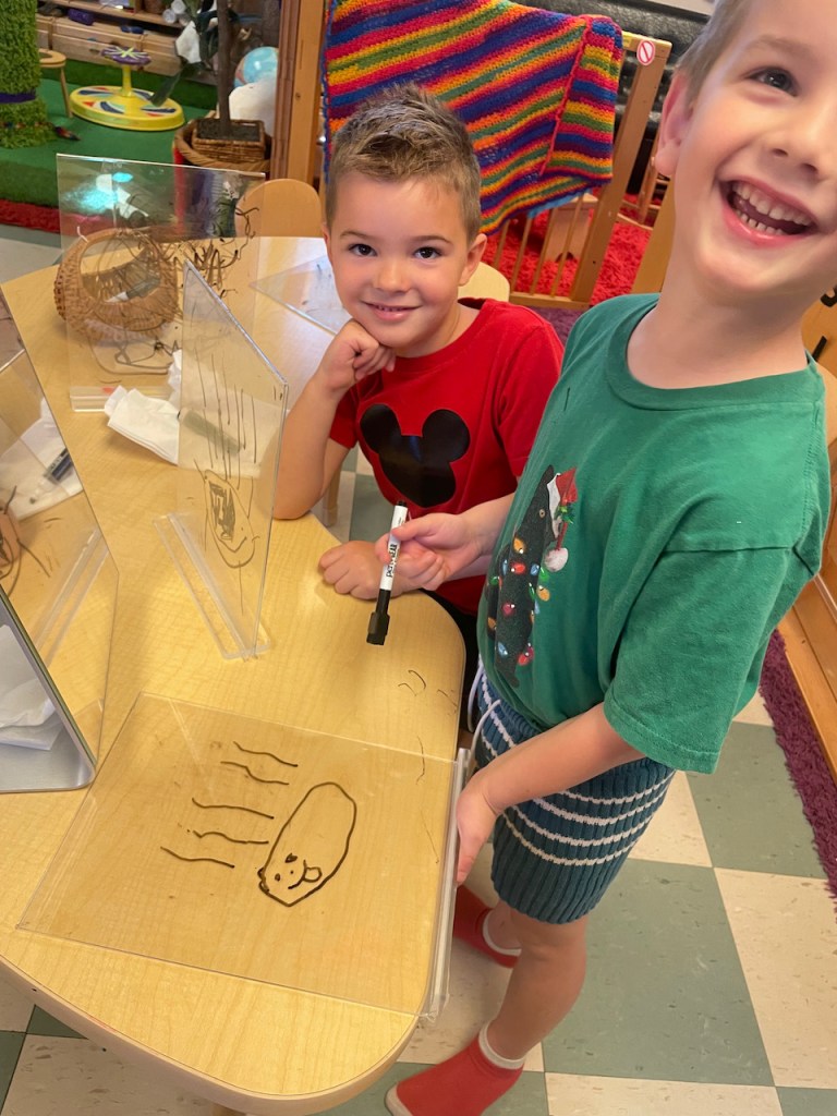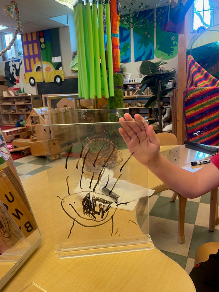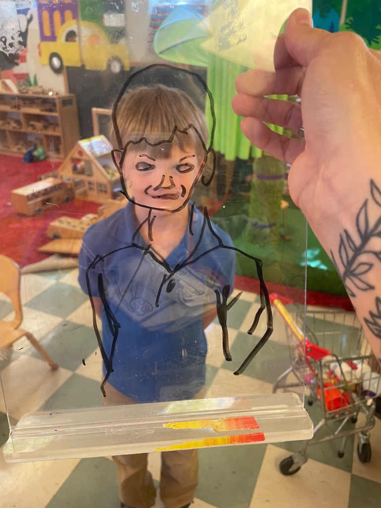 No! Our faces were behind the plexiglass so the black stripes looked like they were on us, but they weren’t! We also had fun drawing pictures on the see through boards.