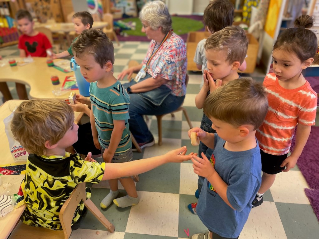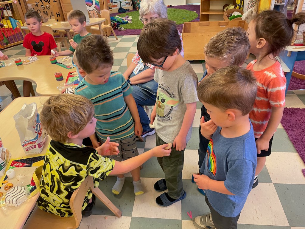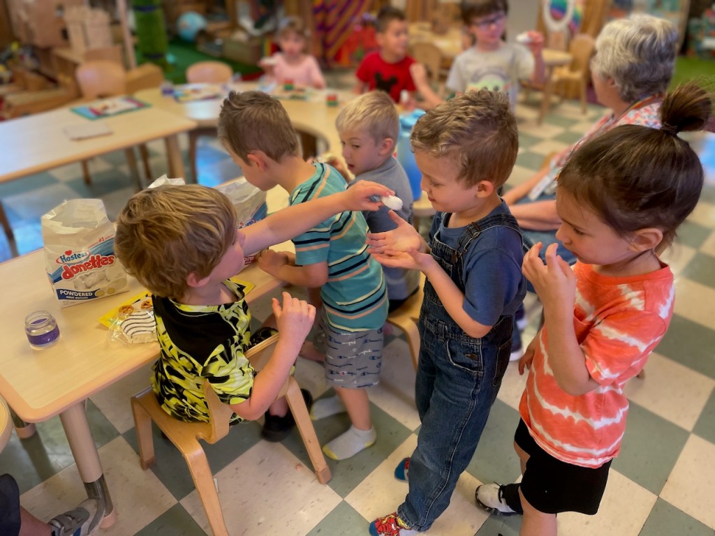 Arthur, Julian and Slava! They all have birthdays this summer so we celebrated today. We had Zebra cakes and mini donuts along with popcorn and goldfish. Thank you, summer birthday friends!