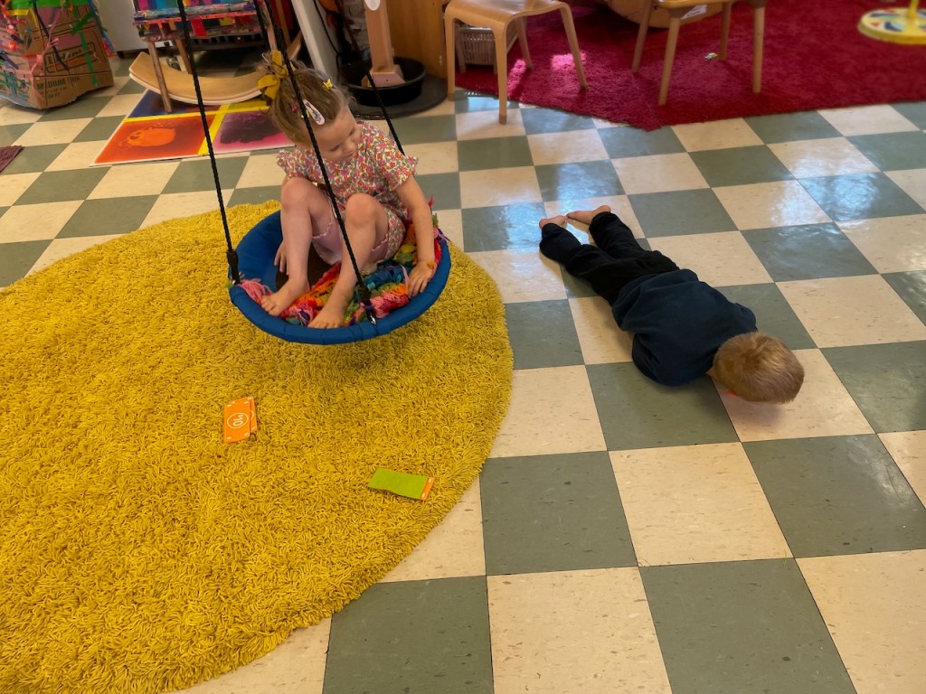We continued working on our butterfly prints…everyone will take one home on their last day. We ate snack out of our School Boxes! We had a very special snack mix and made a graph of favorite parts. Ms Kristin dropped in another package of Smarties since we are all so smart. We thanked Grandma Mona for all the extra clean up she did after snack time. We went on the little round swing. We matched the plastic eggs and went in the sound tunnel. We worked with the months of the year and holidays during Circle Time. We hid the spots with our feet at Circle Time too. We talked about Kindergarten, preschool and summer. We played with favorite things and did Show and Tell outside. We picked flowers and watched some city workers use the fire hydrant. We held hands to play a Circle Game at the end of the day and sang We Wish You Well. We had a such a special day today.