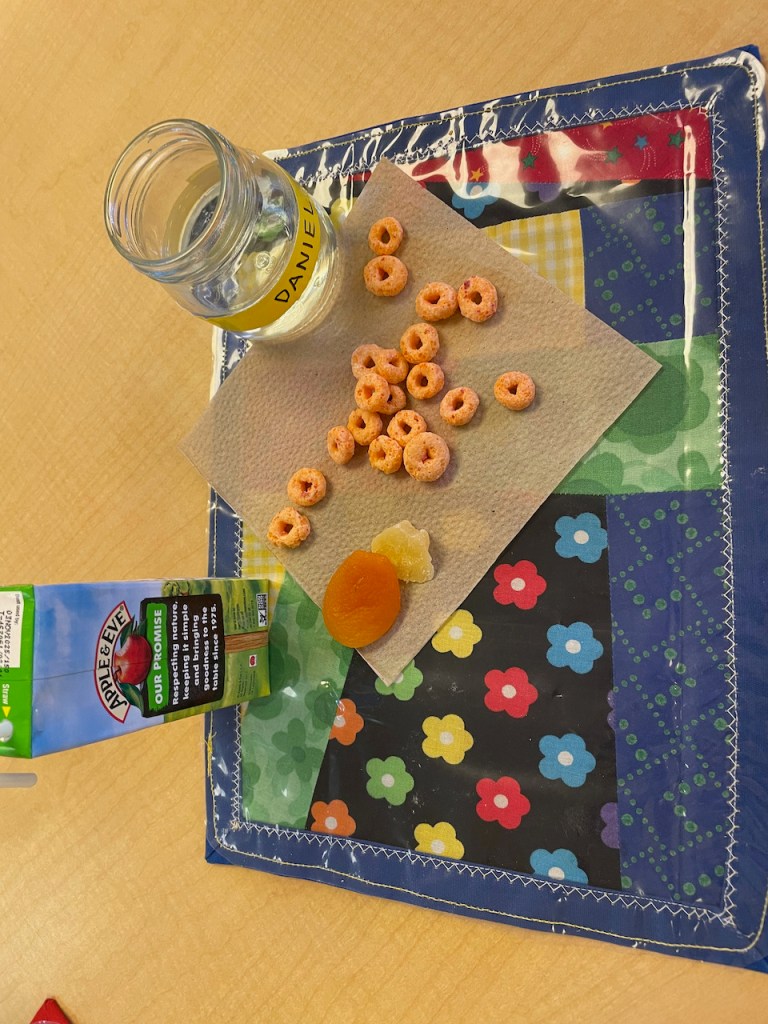What do your do if you’re hungry at preschool? There will always be food available for hungry children. Sometimes children bring their own food which they are allowed to eat anytime and teachers will help them find a space to eat. We also have saltine crackers and today we had apples available for a pre or post snack nibble.