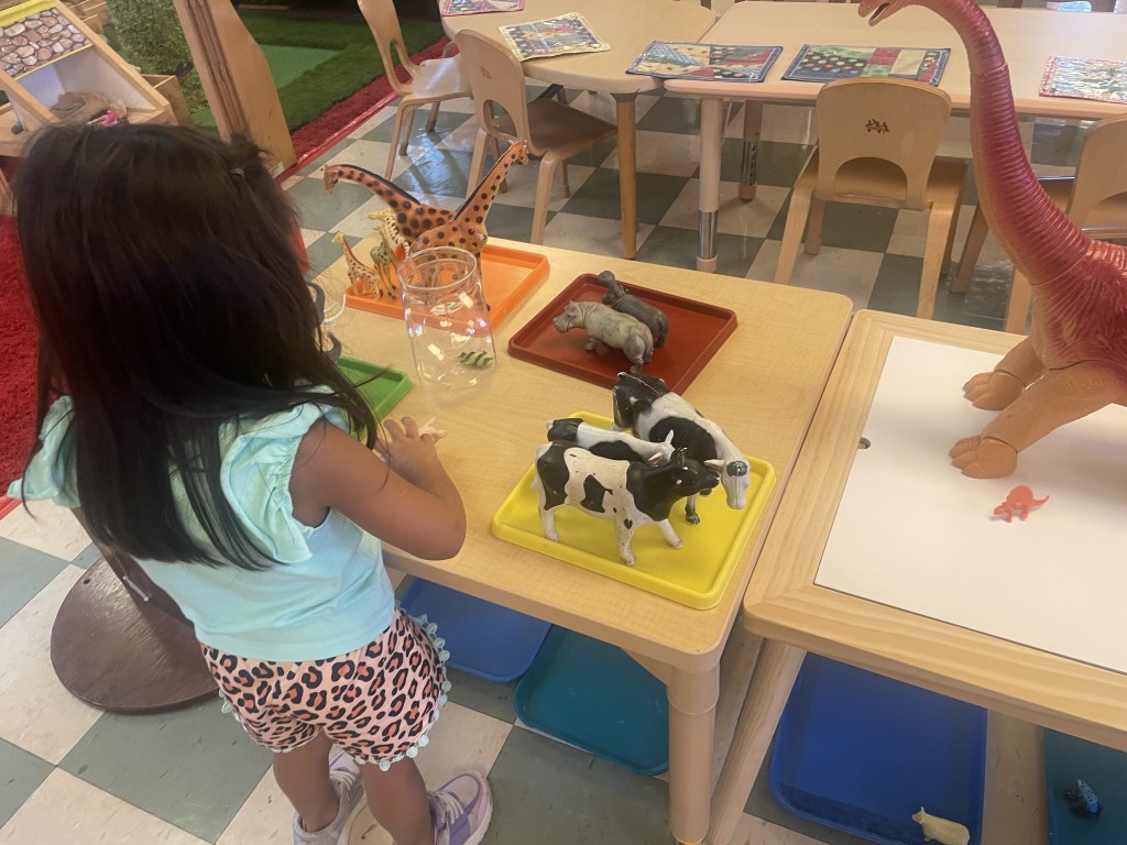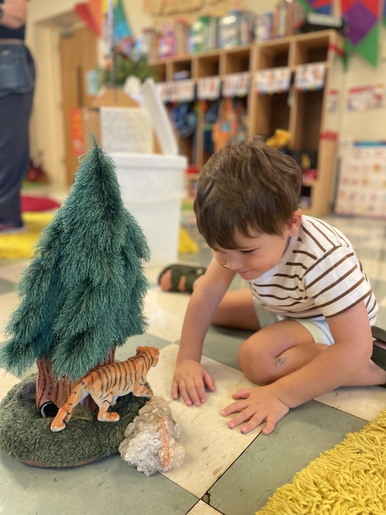 .To help the baby animals find their grown ups! Technically the baby animals were often just smaller versions of adult animals, but we do have some actual baby animals too! Children worked on classification skills in this natural play environment.