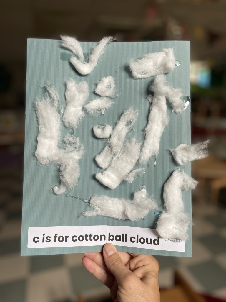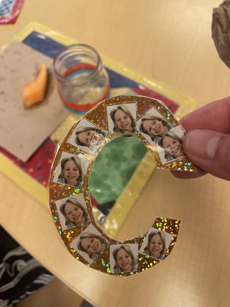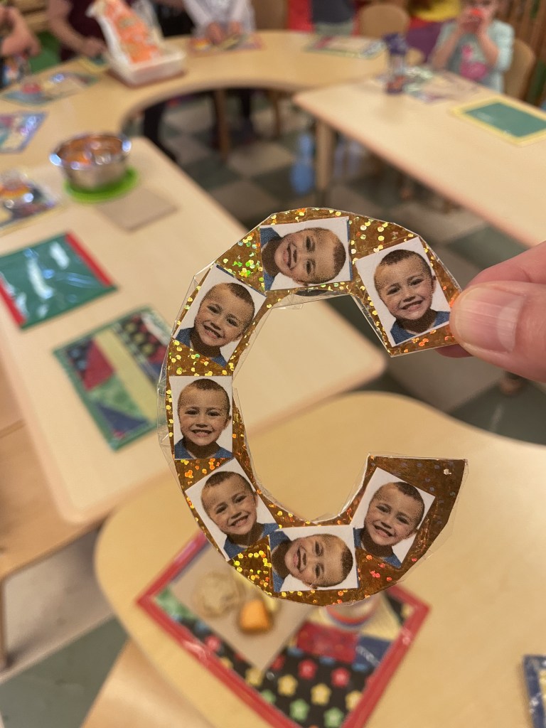 On Tuesday we honored three of our four Golden Letter friends! This included an exploration of the C+H chunk sound and the hard C sound. When we honor our Golden Letter friends, we are simply clapping and cheering in recognition of their given names. Plus they take home their every-year-they-are-a-little-different Golden Letters made by me. Read on to find out more about Tuesday and enjoy the video snippets of us busy at play.