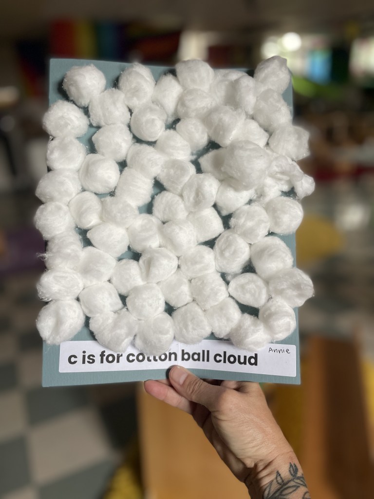 Cotton balls! There was the option to leave them as round balls or to unroll them or to pull them apart.