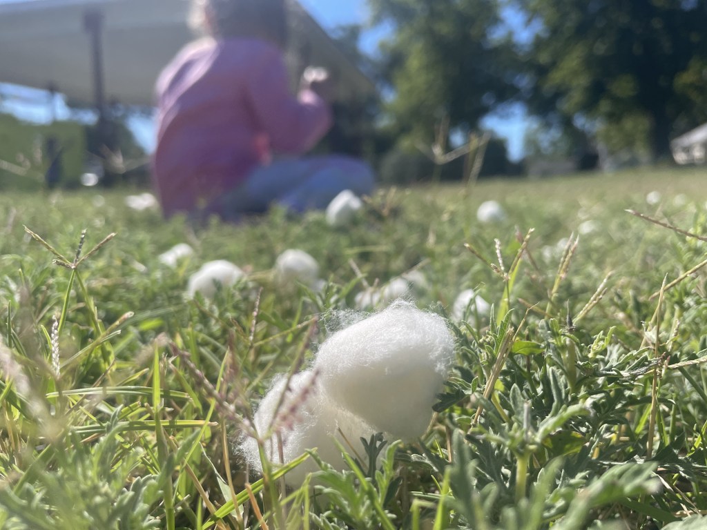 Cotton balls! Once everyone finished their alphabet project, we threw the extra cotton balls as high as we could…we were throwing clouds! One of my favorite ways to connect with children is through playfulness. Telling those clouds to “get back in the sky” was definitely playful and had the children gazing up and around.