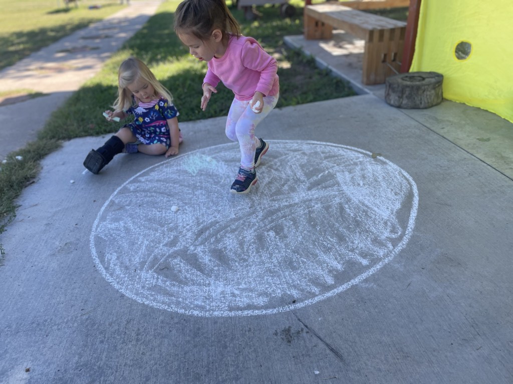 We also made a huge chalk moon outside (and moved chalk to the rain tables as well).
