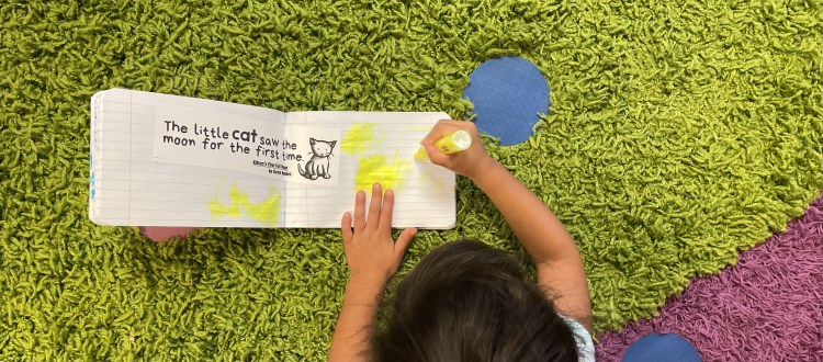 A moon! After reading our Story Time book and checking for the moon on multiple pages, we had Journal Time.