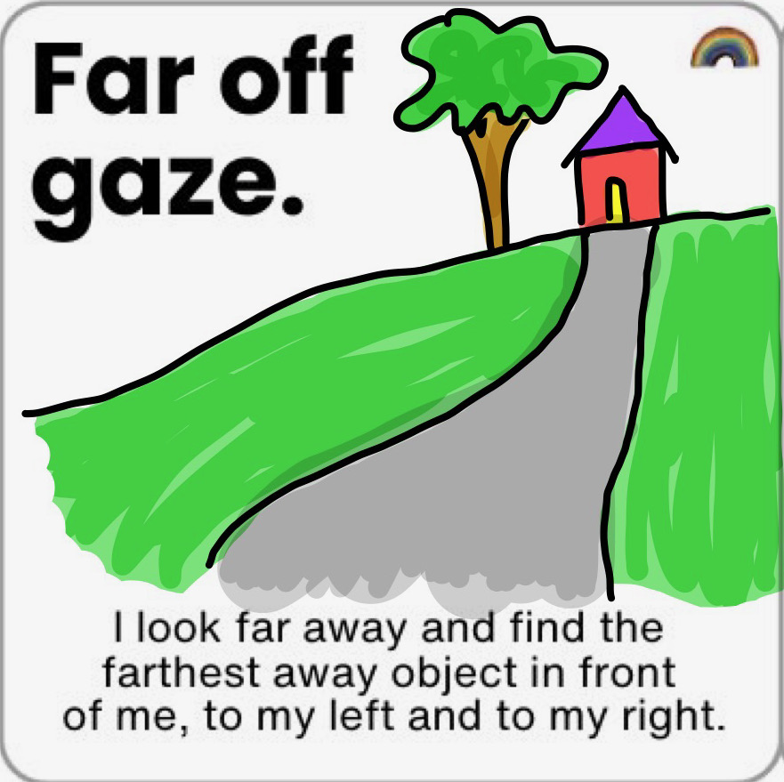 This week we are exploring the “Far off gaze.” Using our eyes to look at things far away can have relaxing and calming effects.