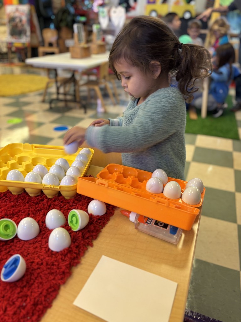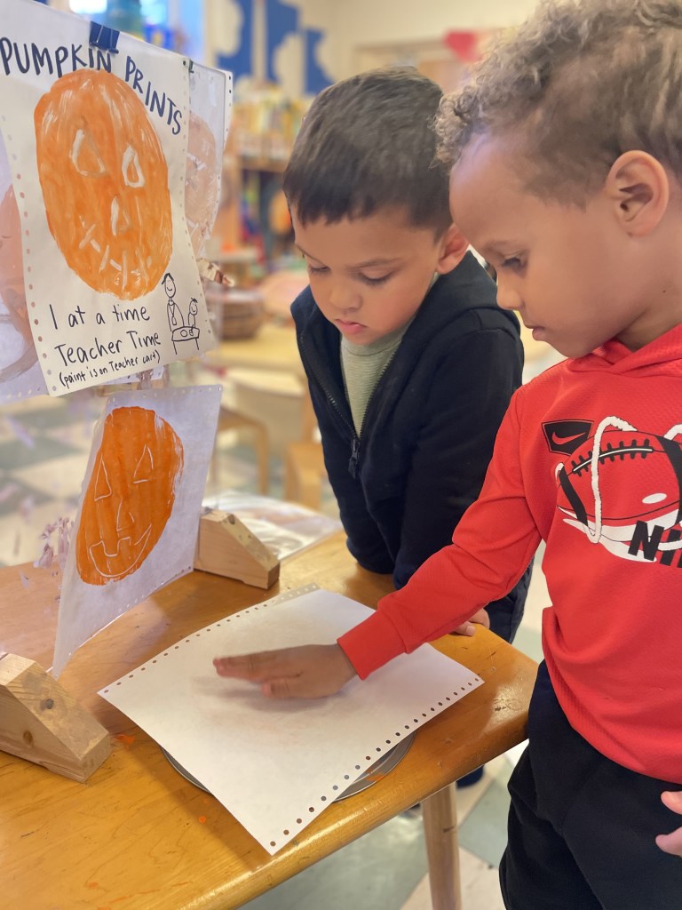 We are exploring exercise in the form of hiking (to get to places where we have the opportunity for wide open views), using hundreds of googly eyes in playdough, cloud dough and our journals! There are elephants and eggs at tables which get a lot of attention. We’re really getting into the October spirit with talk about costumes and painting more pumpkins while playing freely in the classroom. Next week is when children can join me in wearing or bringing their costumes! Enjoy pictures and videos of our day today: