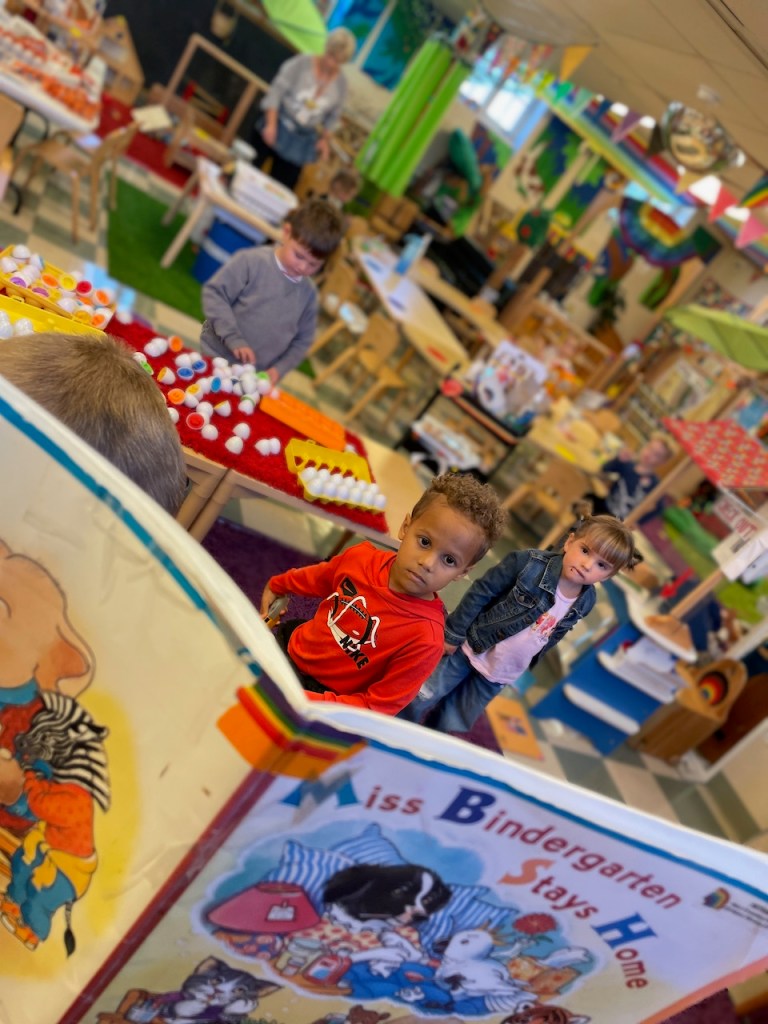 Just like our dear Grandma Bonnie and Grandma Mona, we read about Ms Bindergarten staying home sick. In our book more kids got sick and stayed home. The surprise ending was that Ms Bindergarten came back to school but then Mr Tusky the substitute stayed home sick! So far we’ve not had any preschoolers home sick and we’re washing our hands a lot!
