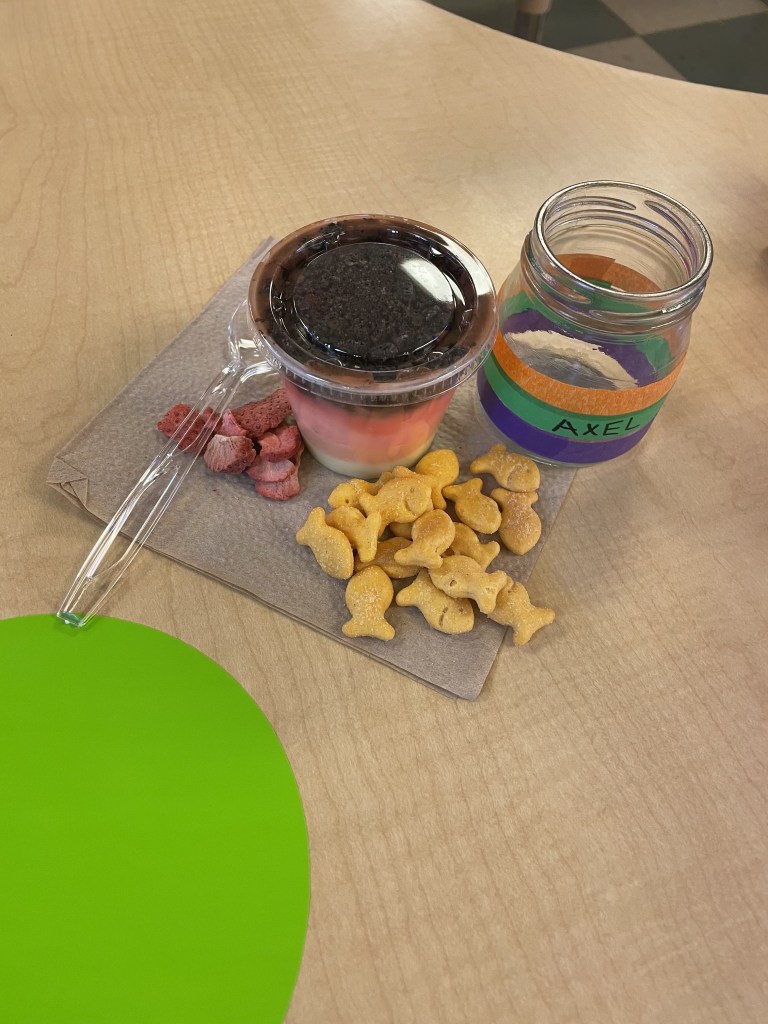In the afternoon we ate goldfish, freeze dried strawberries and the earth from Owen. (This is a good time for you adults to say, wait…you ate the earth? We are on the earth!) Thank you, Owen! Here is a description of the earth snack:
