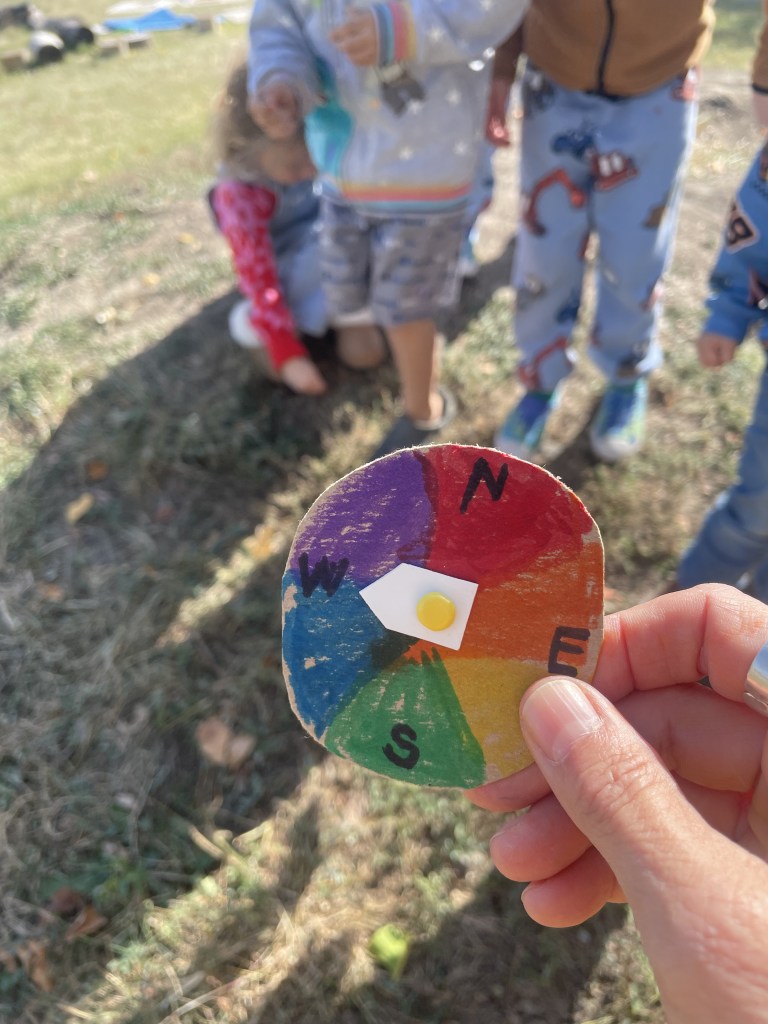 Our cardboard and metal brad compasses were uniquely decorated by each child and then put to good use for our hikes around the classroom and playground! We hiked west to our own Dirt Mountain (which is really just a mound of dirt that we usually call Dirt Hill). I imagine there may be an increased letter recognition of N, S, W and E after today!