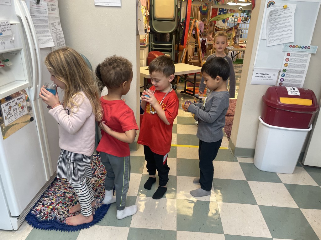 Just like every class every day, the children know how to fill their cups with fresh cold water.
