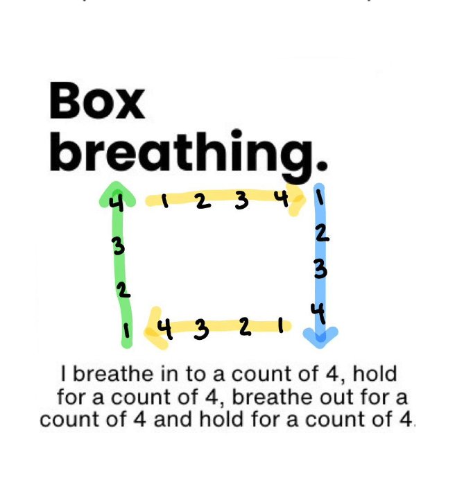 This week we are exploring “Box breathing.” Like other breathing techniques, box breathing involves breathing in and out and holding the breath. It may help clear the mind, relax the body, and improve focus. Very important is to allow the body to return to a natural and spontaneous breathing pattern.