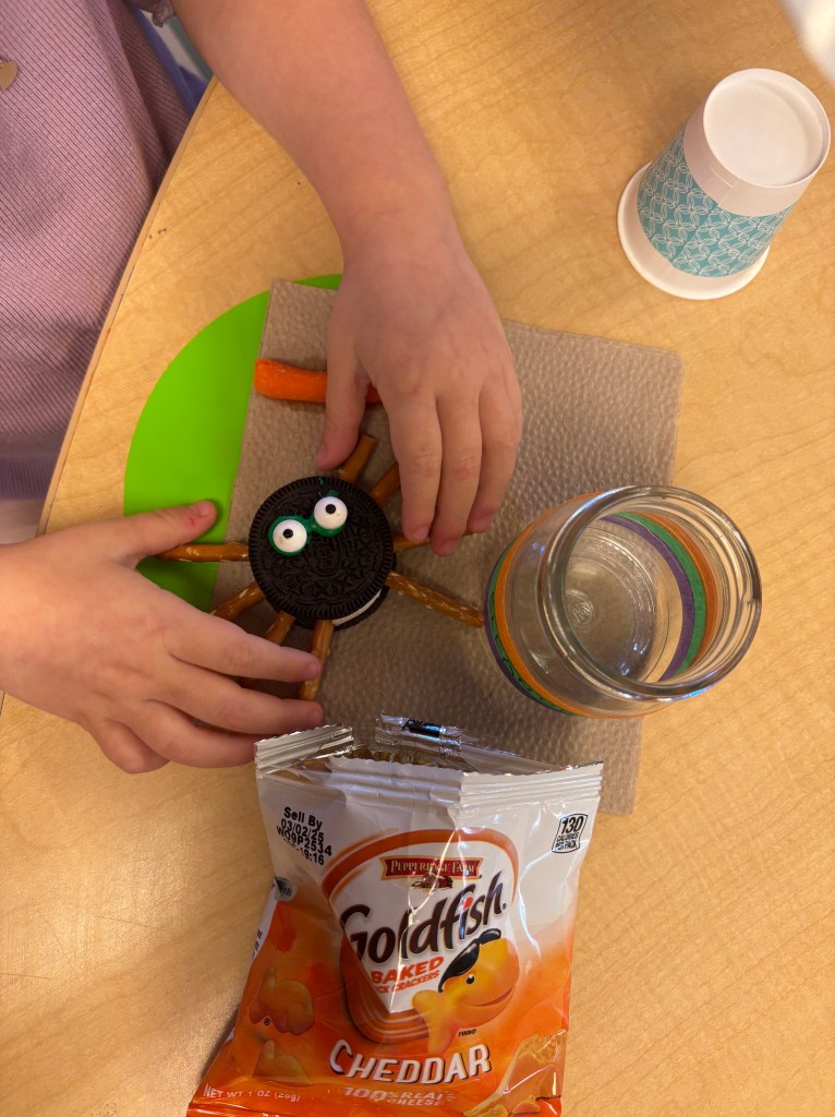 In the afternoon we ate spiders (What?!? They were really cookies with pretzels legs and candy eyes.), carrots and ranch dip from Annie. Thank you!