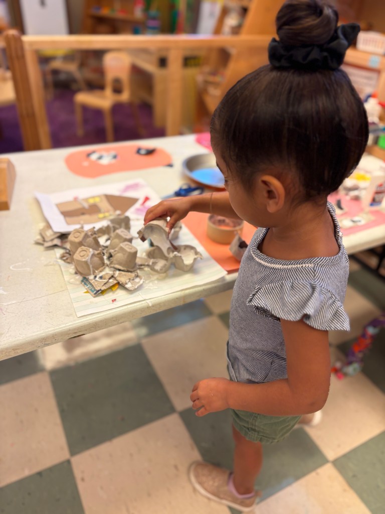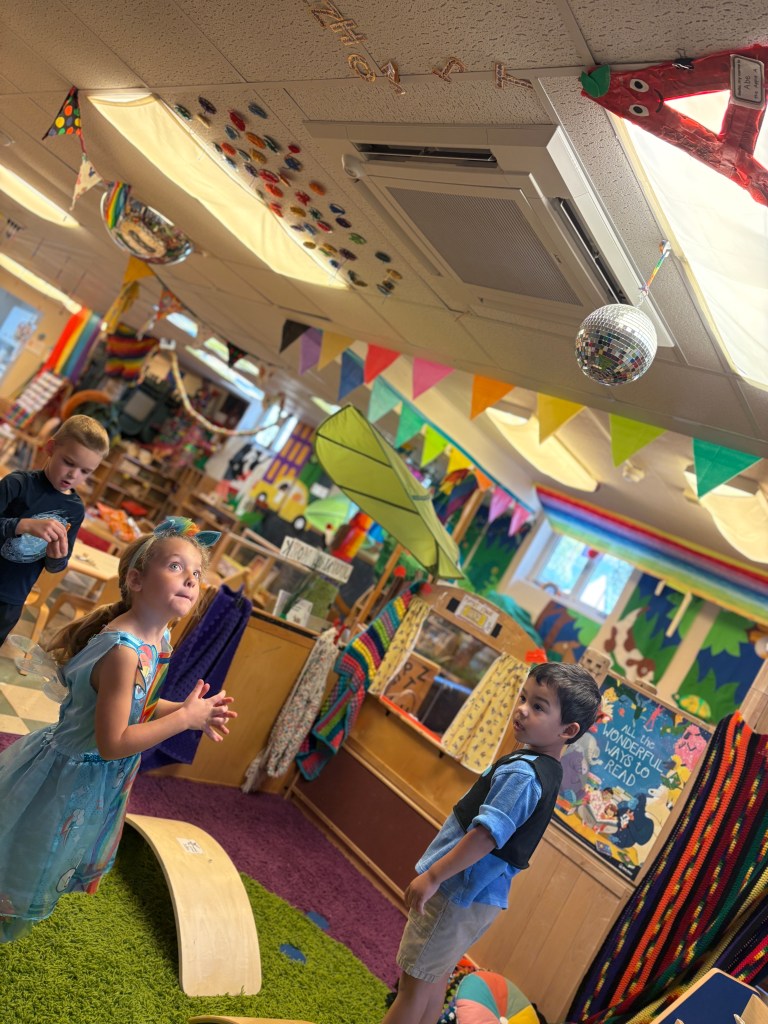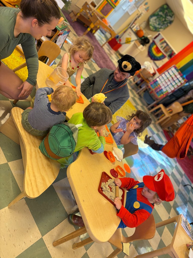 After a week of counting to four a lot, five got their turn! Today we acted out Five Little Pumpkins with props! Most spooky (a combination of a little scary and fun) is when the teachers turns off the real classroom lights when we sing, “…out went the lights.”