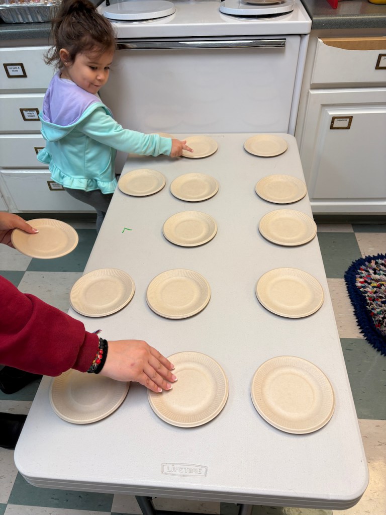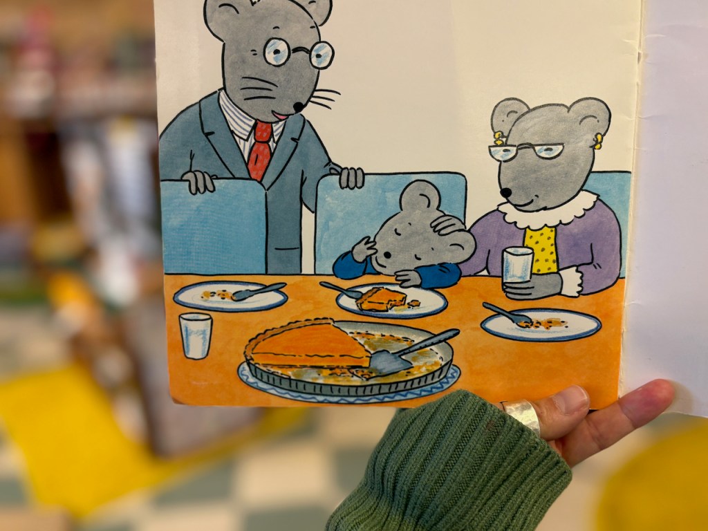 Baby mouse! After a full day of shopping, cooking, visiting and eating, Baby Mouse fell asleep. But as children are quick to remind: we don’t ever take naps for real at preschool. In fact, in all three of our Story Time books, there were characters who fell asleep: the Little Mouse, the baby and the grandpa turkey.