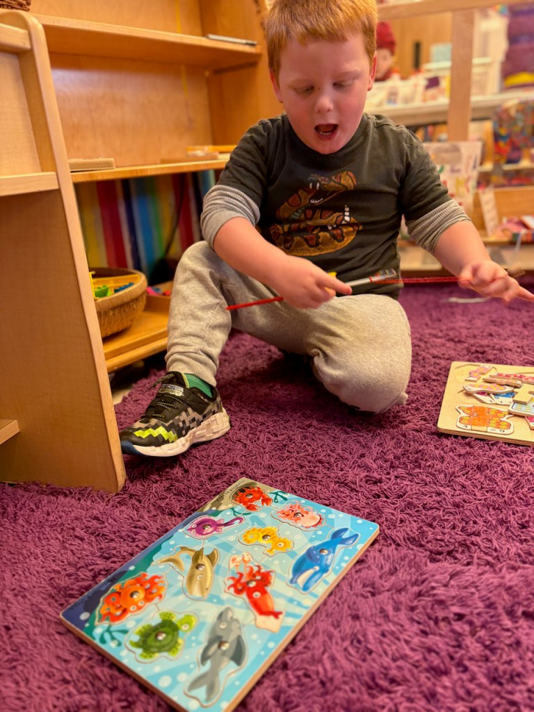 This week we are using ink in a variety of forms and a lot of I statements. Our Coping Skill is scribbling-a perfect outlet for young children! We had a very busy classroom and playground with every corner getting used. There was a lot of puzzle work, a lot of block building, a lot of swing work. Take a look at how we played today: