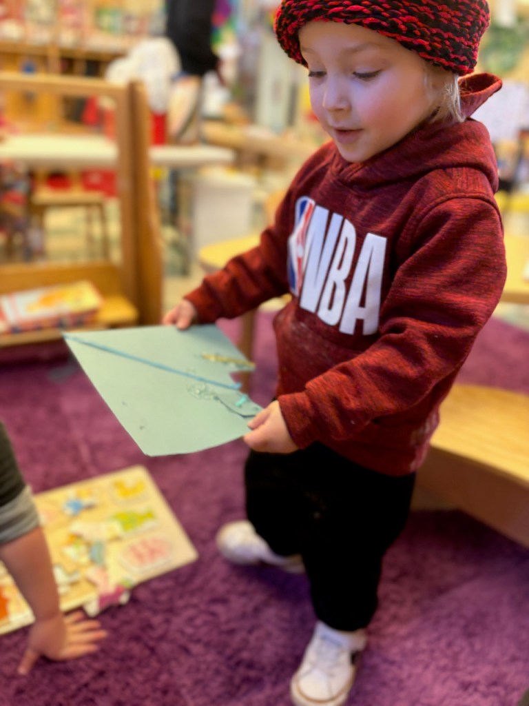 Ink Masterpiece: children are using ink pens this week to create an ink masterpiece with instrumental music in the background. We sure feel like we’re in an art gallery!