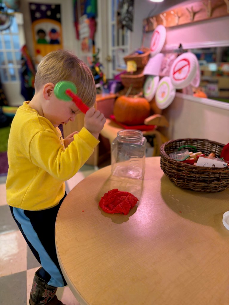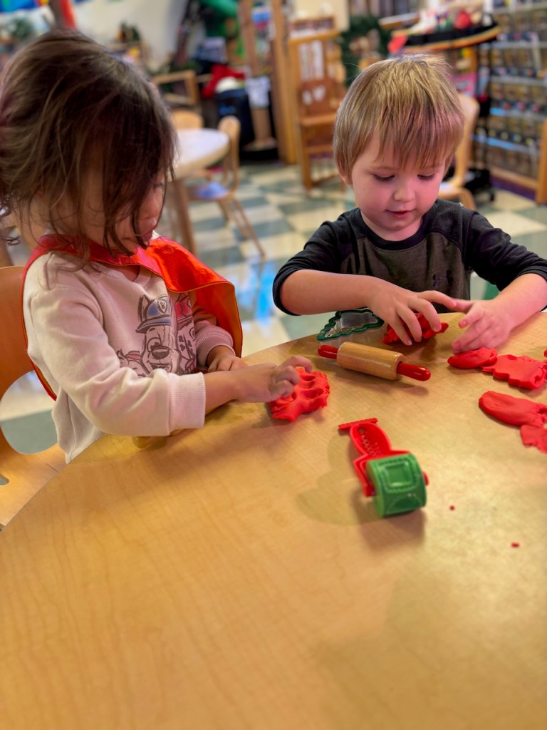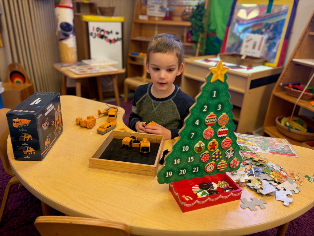 Color of the Month: December’s Color of the Month is red and we’ve switched things out: the playdough and tools, the Tiny Things, the books, items in the Family Corner, puzzles and dress up clothes.