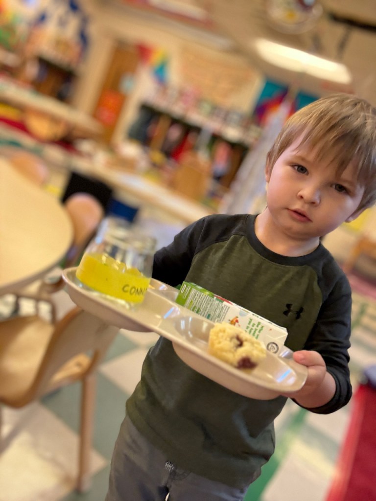What did you eat for snack today? We are so thankful for our new snack trays! Children started carrying them today from the kitchen to their spot at the Big Table.