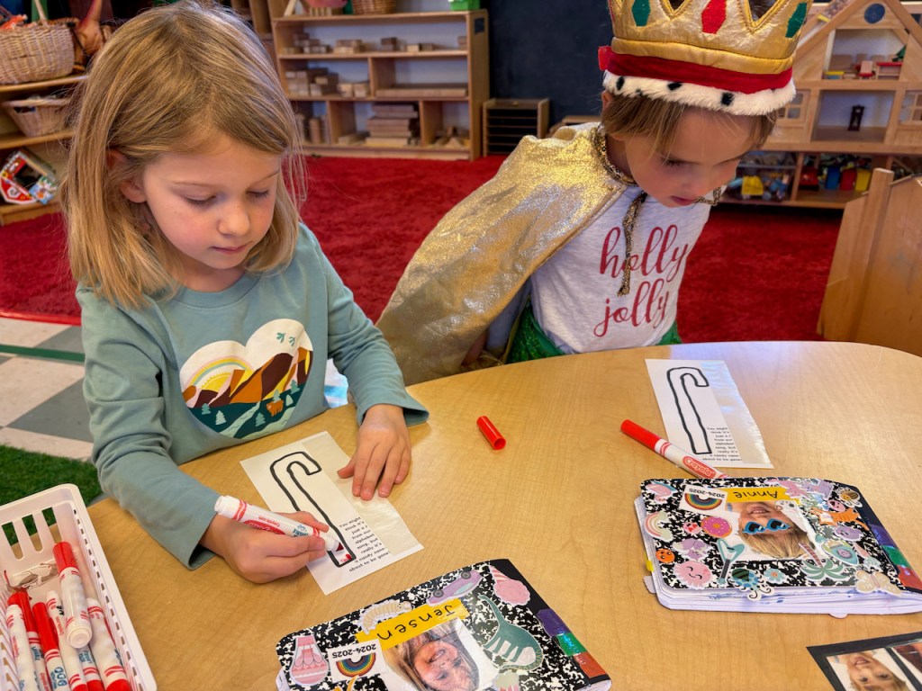Jingle Bells: We are doing jingle bell sticker work (great fine motor work with an emphasis on one-to-one correspondence as they put a bell sticker on the end of a drawn string).