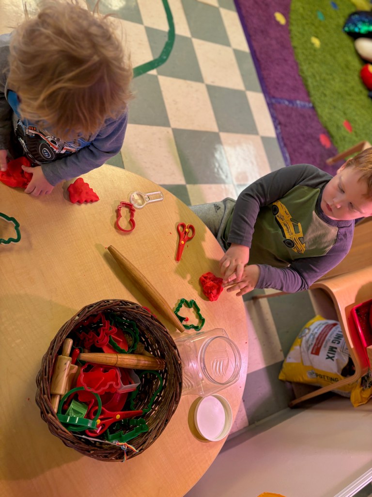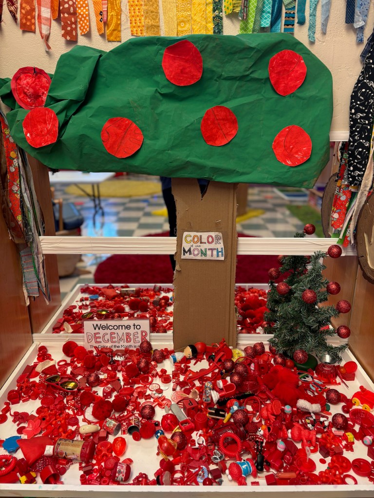 Color of the Month: December’s Color of the Month is red and we’ve switched things out: the playdough and tools, the Tiny Things, the books, items in the Family Corner, puzzles and dress up clothes.