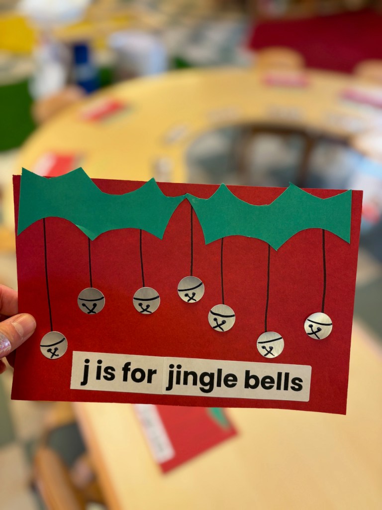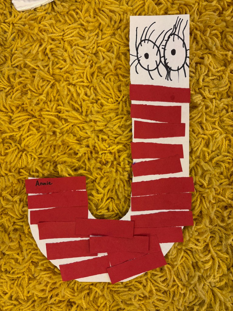 Candy Canes: Oh that silly letter J takes of their hat and turns themself into a candy cane! There is a little poem you might start to hear at home: You might think it’s just a J from our alphabet song, but really it’s a candy cane about to be gone! We have a copy of it in our journals and can make the candy cane disappear by closing the journal!