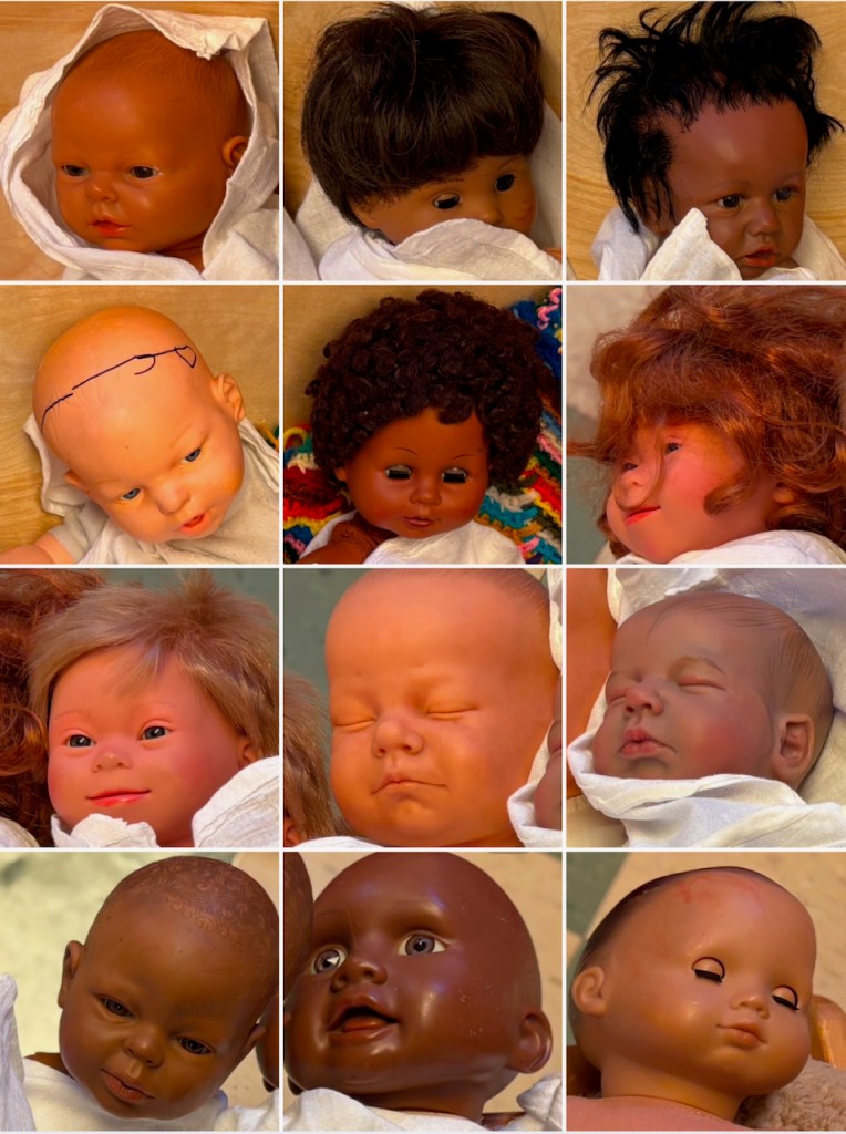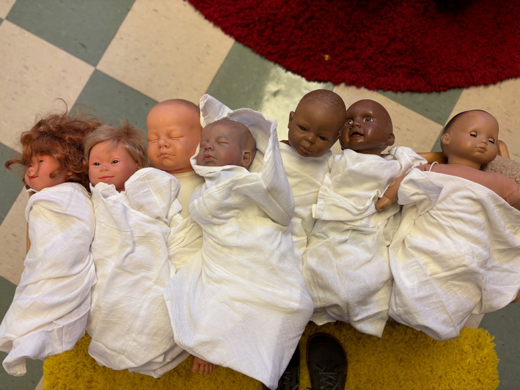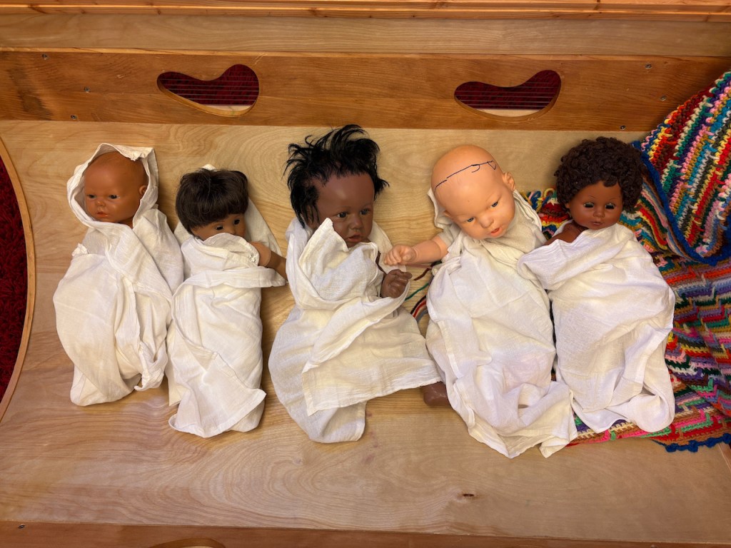 They all have their own swaddling cloth and love to be held. Over the years they have acquired names including one who is simply known as Jesus because she was Jesus in a church play once. Here they all are: