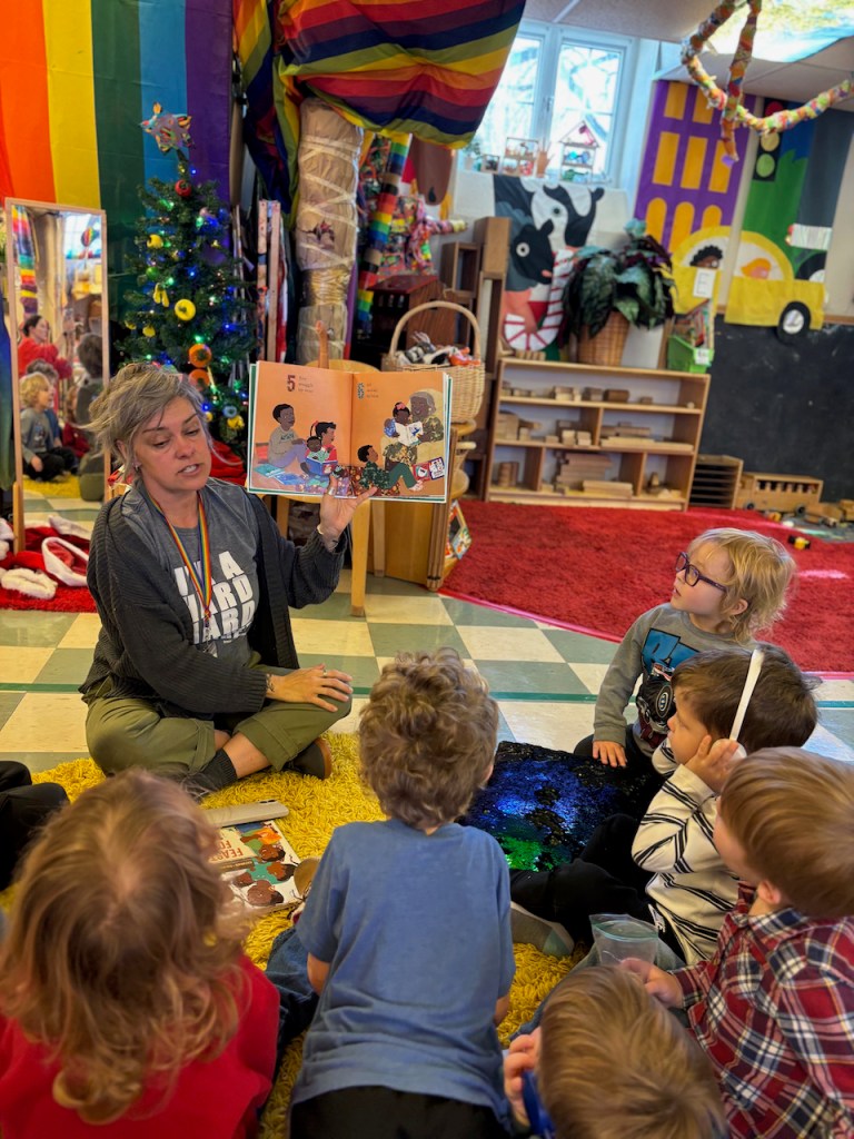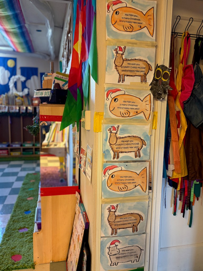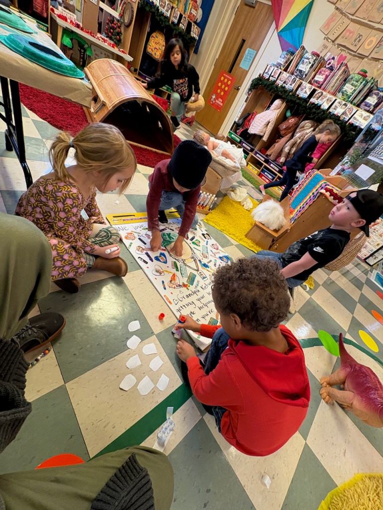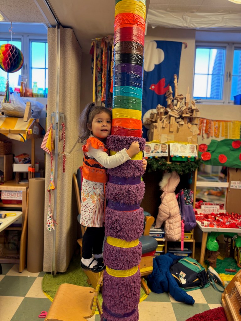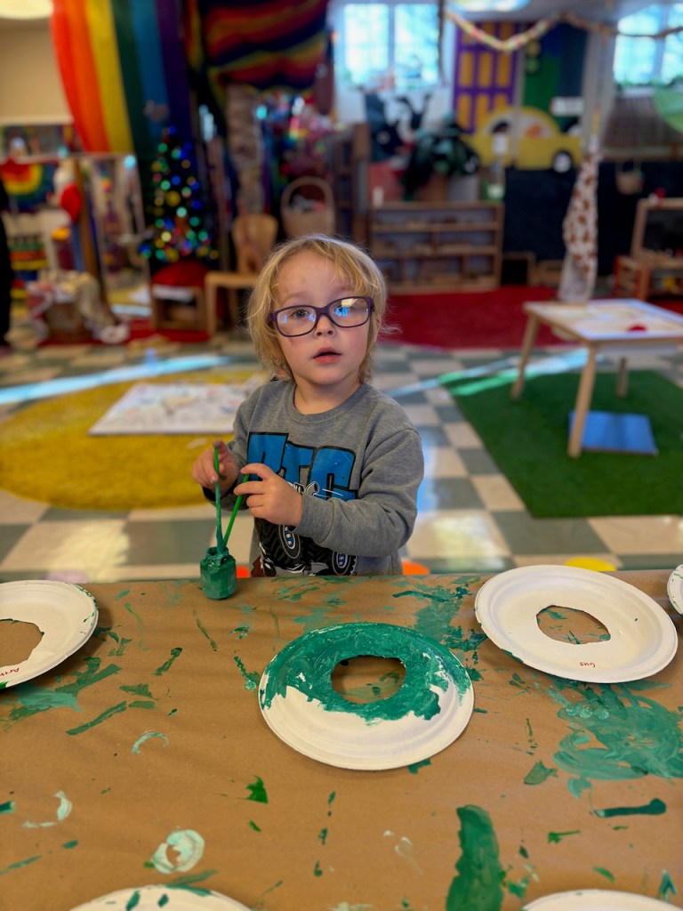 This week was all about welcoming December, jingle bells, candy canes, baby Jesus and jumping! The classroom is decorated and the Dirt Pumpkin continues to grow! We are up to 11 sprouts! We ended both sessions with big swing time (it’s one of the best group activities especially when I sing made up verses to Jingle Bells and take breaks to clean up any messes the children can spy from the swing). Read on to learn more about our play today.