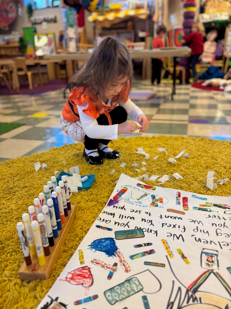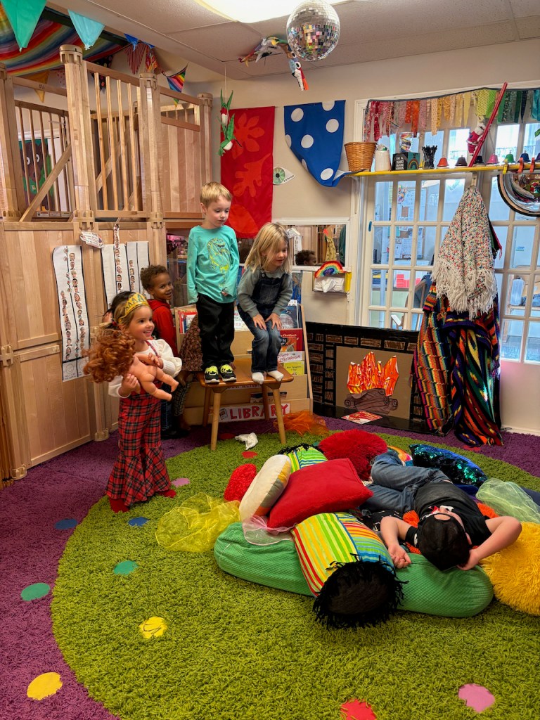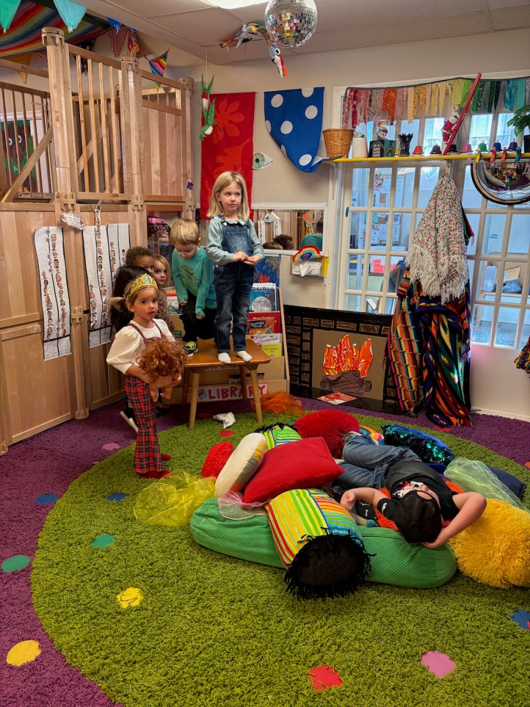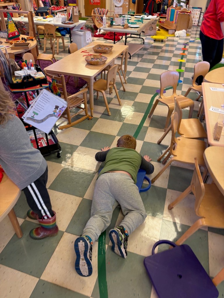 Jumping: in addition to our daily practice of this week’s Jumping Jacks Coping Skill (read more below), Jumping Land is back! This happens at the Circle Time rug and uses all the pillows and blankets we have.