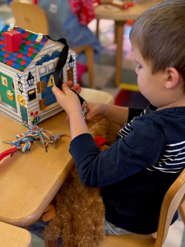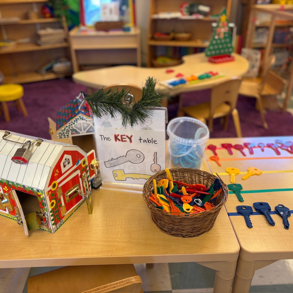 Keys: Using a lot of fine motor skills, we’re working with real and pretend keys this week.