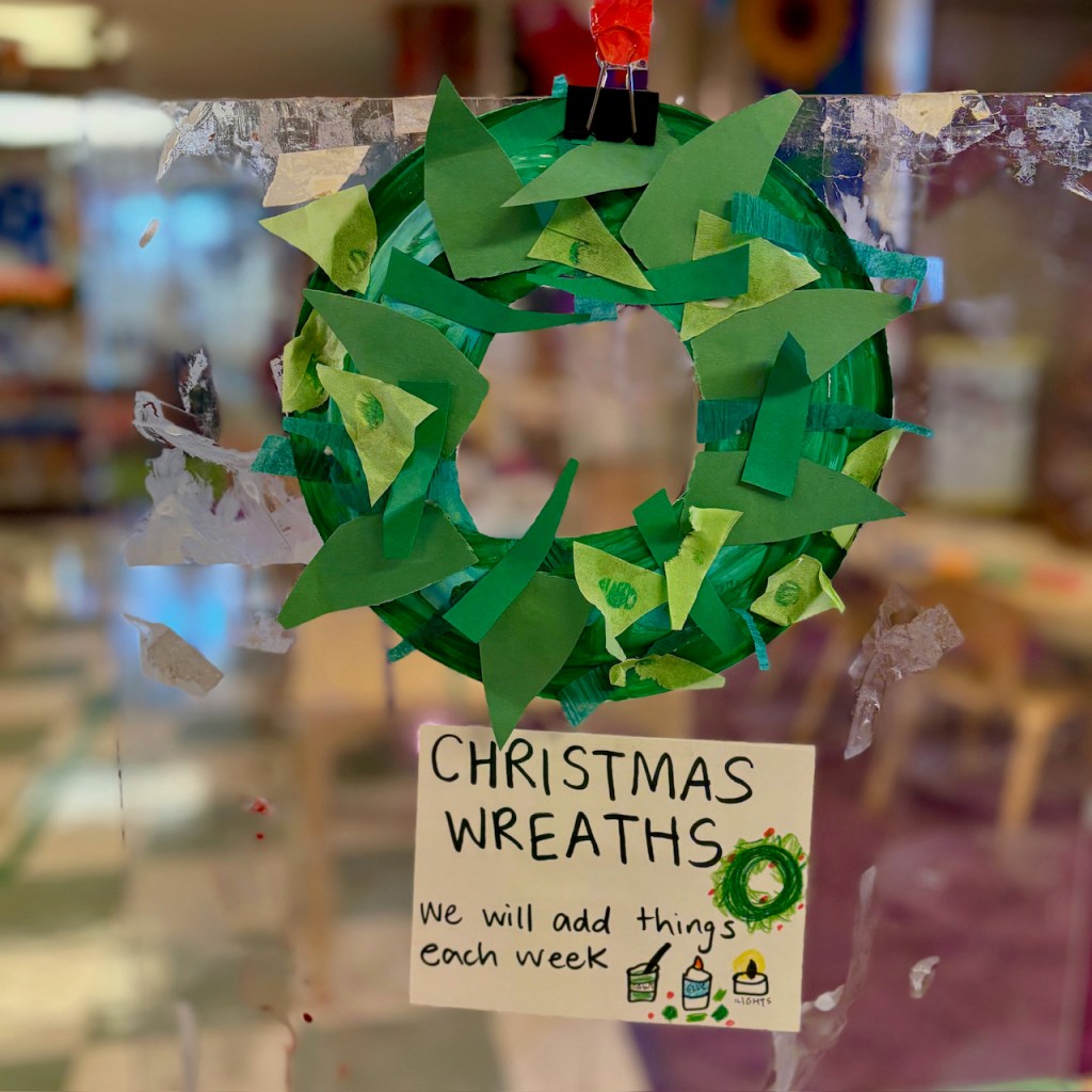 Christmas Wreaths: The layers of paint are dry and this week we’re adding leaves, berries and pine needles!