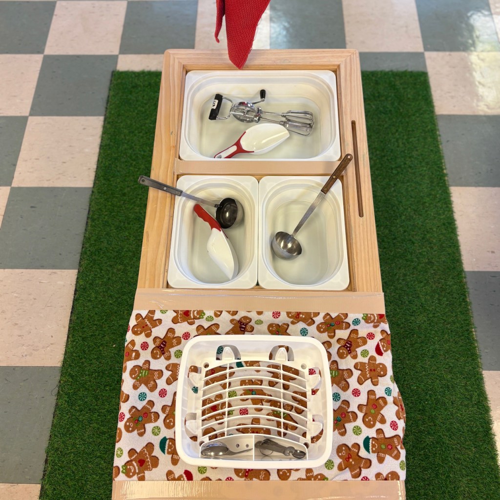 Kitchen Sink Water Play: We have real kitchen tools in the water table this week!