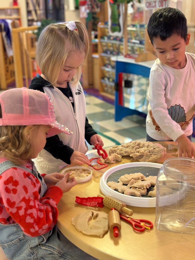 Kitchen Play: We moved our Family Corner kitchen stove to the Play Dough Corner for some pretend Christmas cookie making.