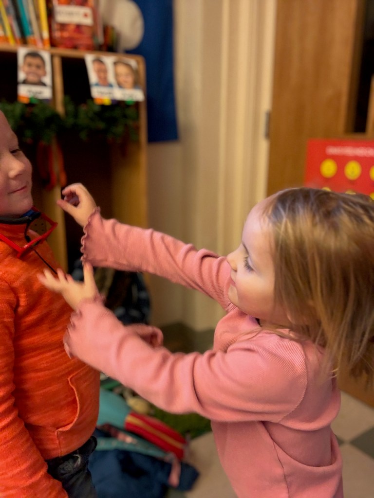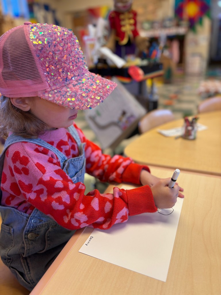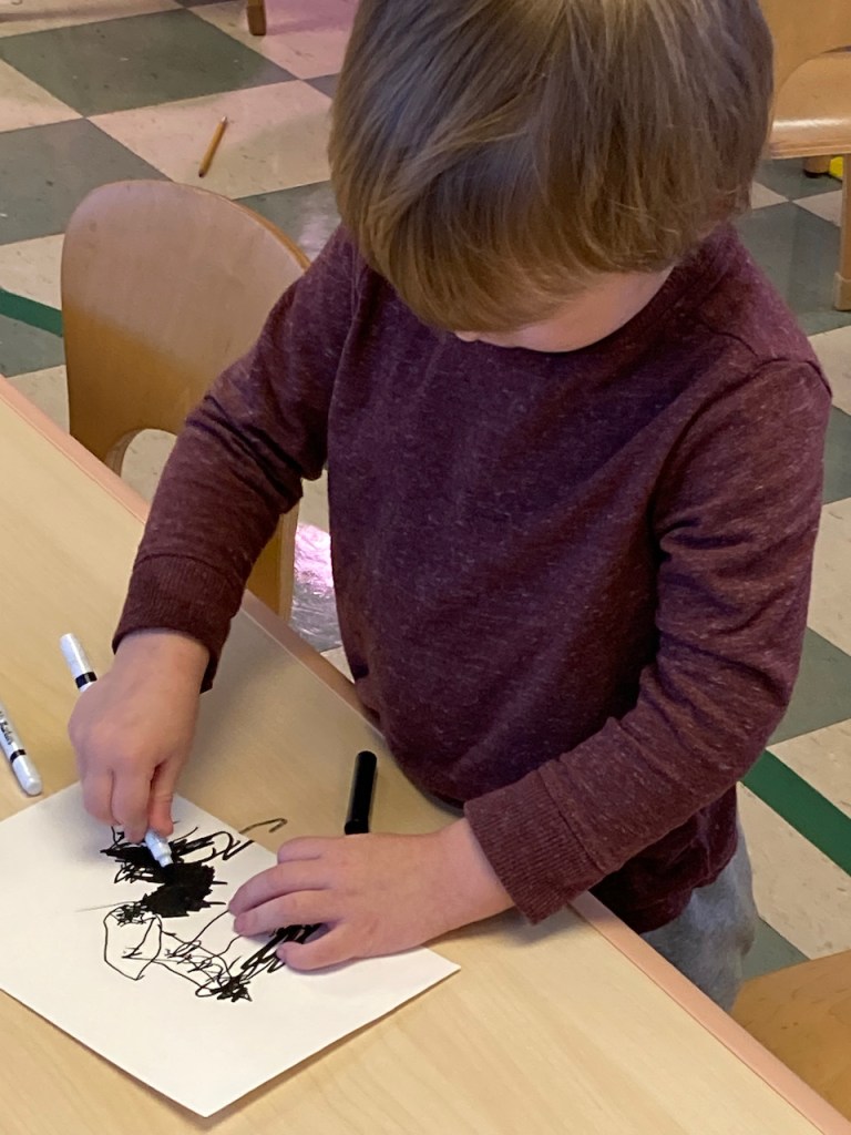 Kin drawings: Children are drawing their families this week while practicing the word “kin.” With a wide open invitation to think of their kin, some children drew a few people and others drew many. A family is a family! Kin is kin! Remember that young children’s drawings of people start by resembling a tadpole- with arms and/or legs attached directly to the face. The face may not have any features. Next children start to add features (eyes and mouth). It is usually not until after the age of 4 that children start to draw a separate body.