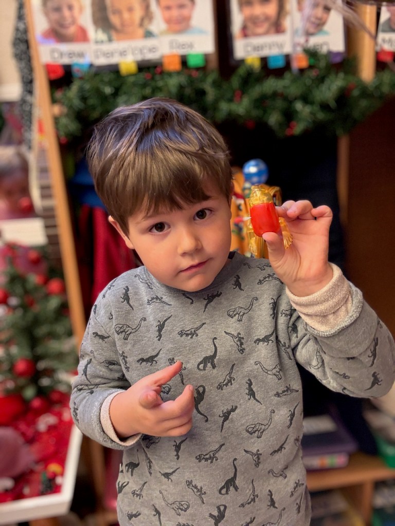 Kris Kringle: We have books and dress up clothes about who we’ve been referring to as “Santa”…this week we say Kris Kringle! There are other names for him too like Papa Noel, Father Christmas, St Nicholas, St Nick.