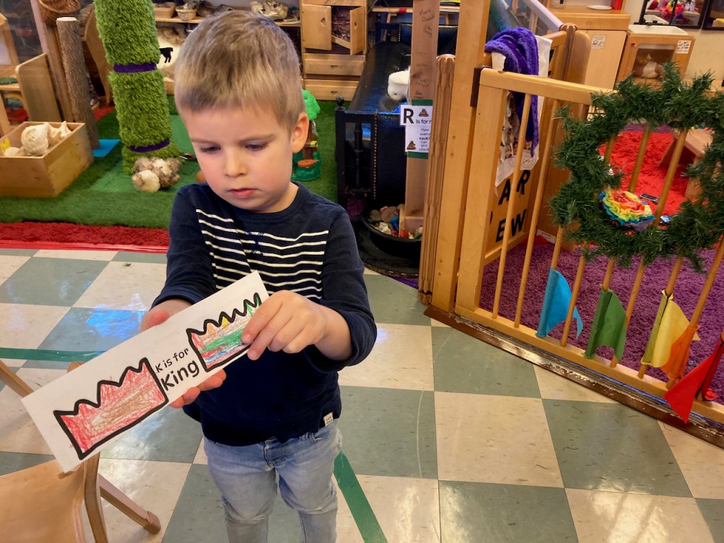 Kings: We are using the fictitious story of King Keenan (a kind ketchup loving king who shares the key to the castle) to explore leadership qualities. We have crowns to wear and to color in our journals.