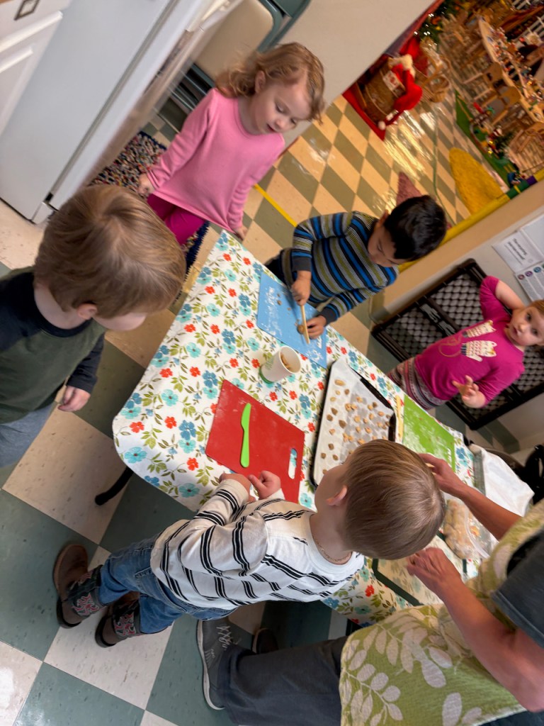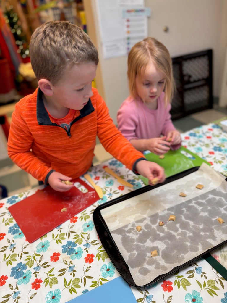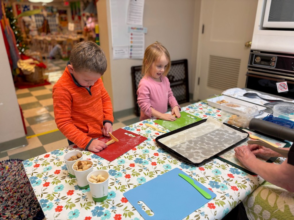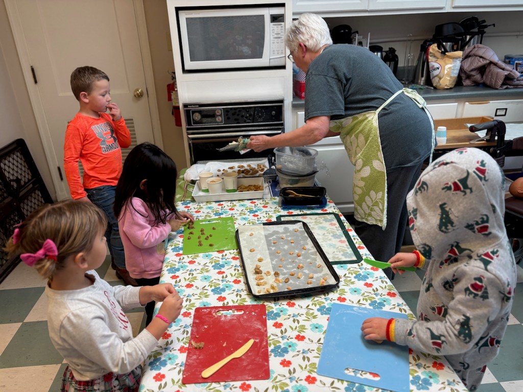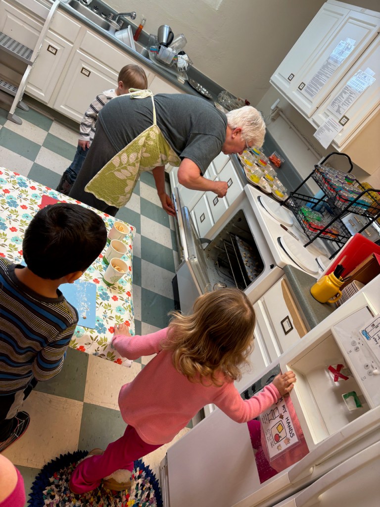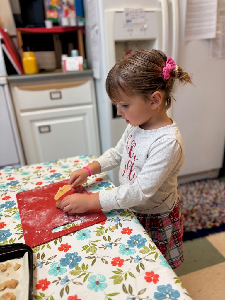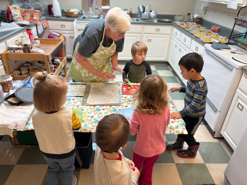Who worked in the kitchen all day? Grandma Bonnie! She helped each child roll, cut and bake 3 kinds of cookies plus an egg free version. Check your backpack for a bag sent home for you to taste! Thank you, Grandma Bonnie for “being so nice in the kitchen and letting us taste the ones we just baked and letting us help with every part of it except touching the hot pans.”
