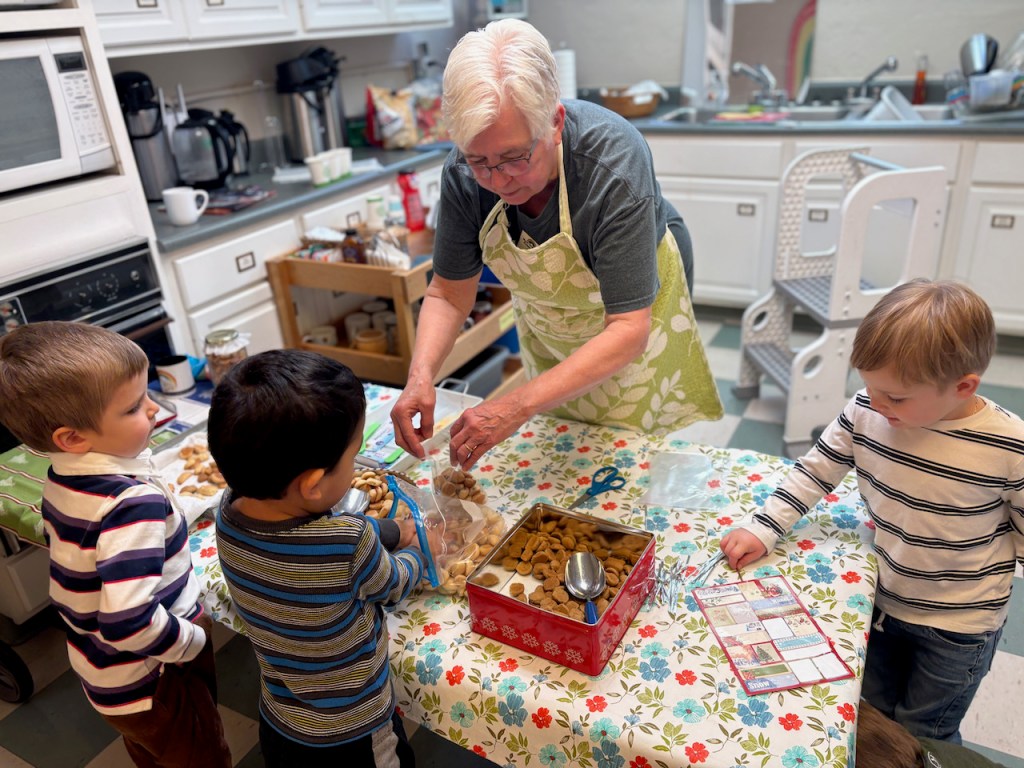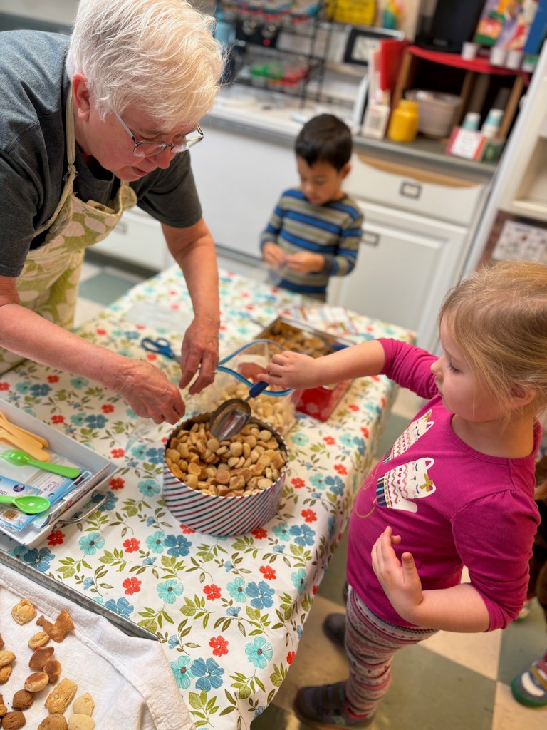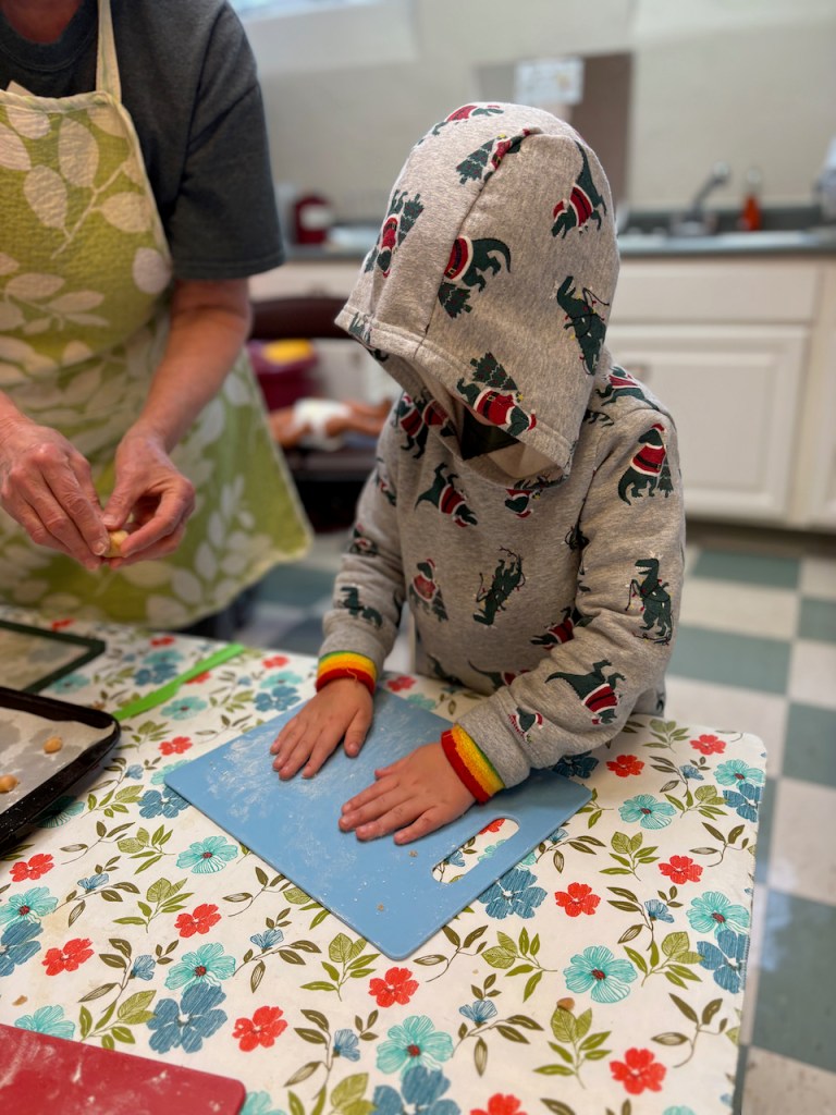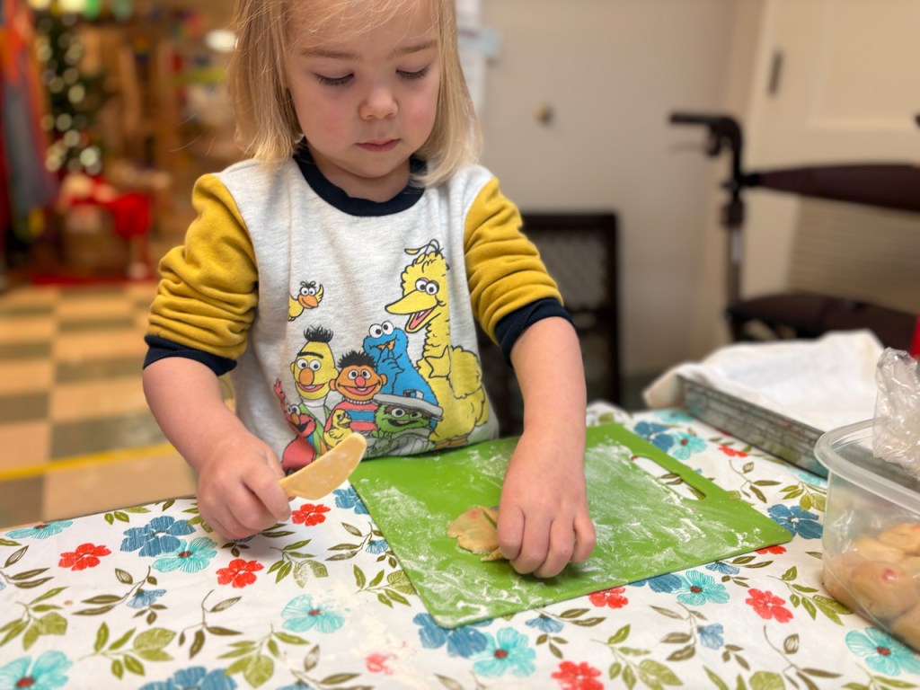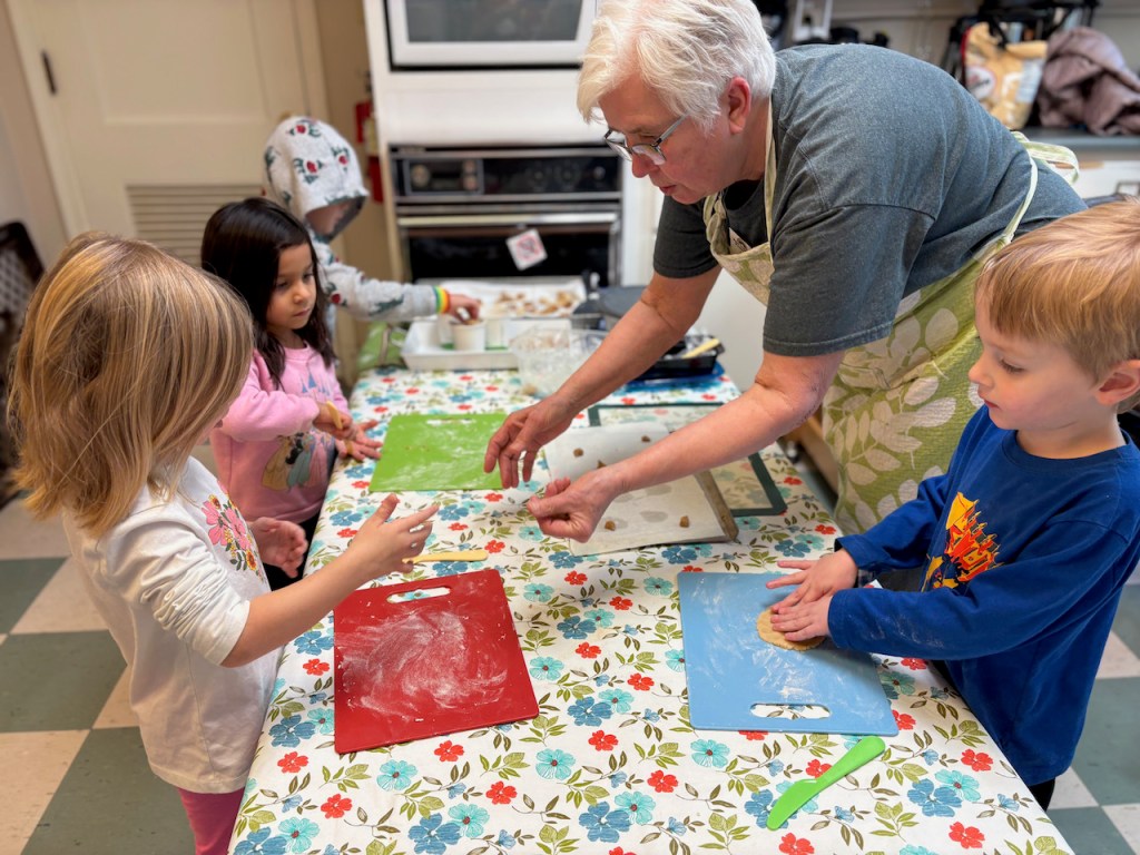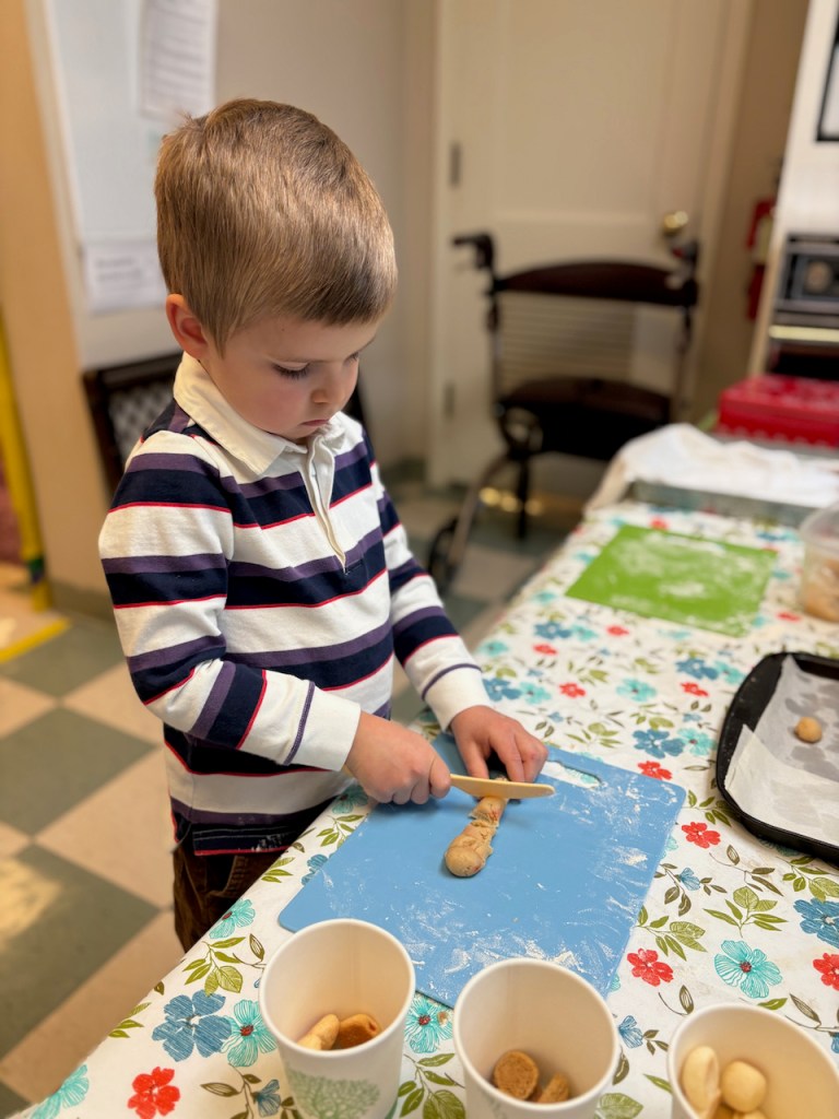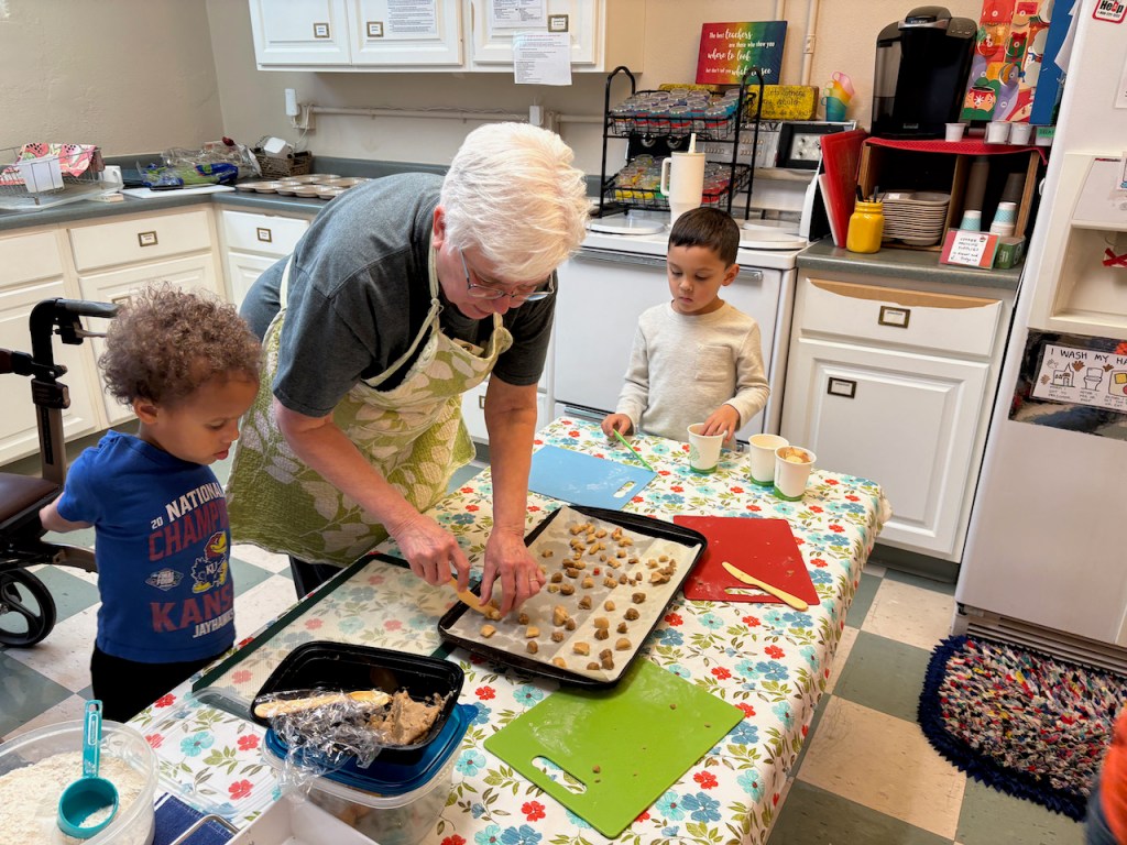 Who worked in the kitchen all day? Grandma Bonnie! She helped each child roll, cut and bake 3 kinds of cookies plus an egg free version. Check your backpack for a bag sent home for you to taste! Thank you, Grandma Bonnie for “being so nice in the kitchen and letting us taste the ones we just baked and letting us help with every part of it except touching the hot pans.”