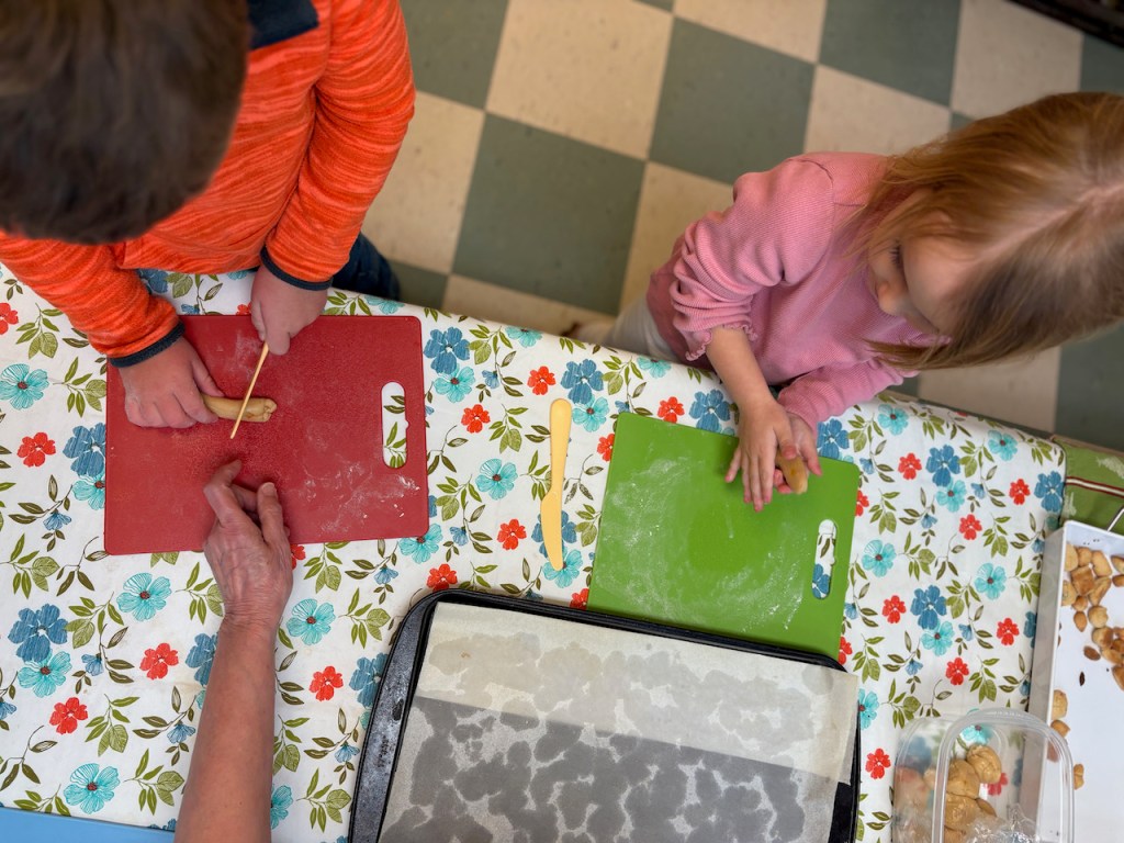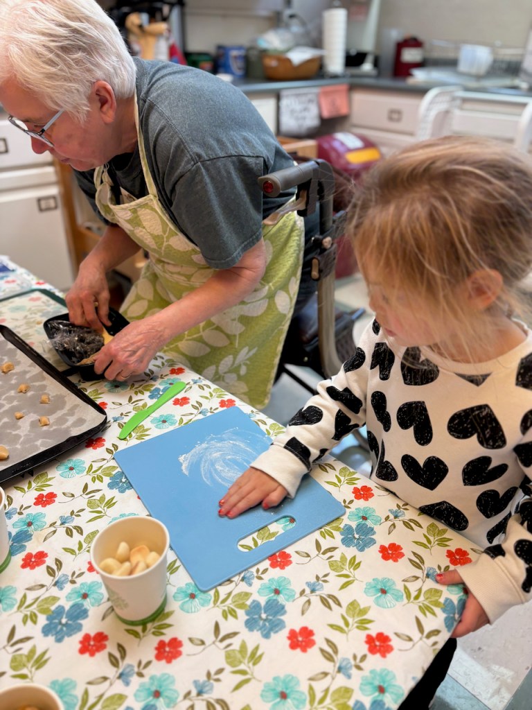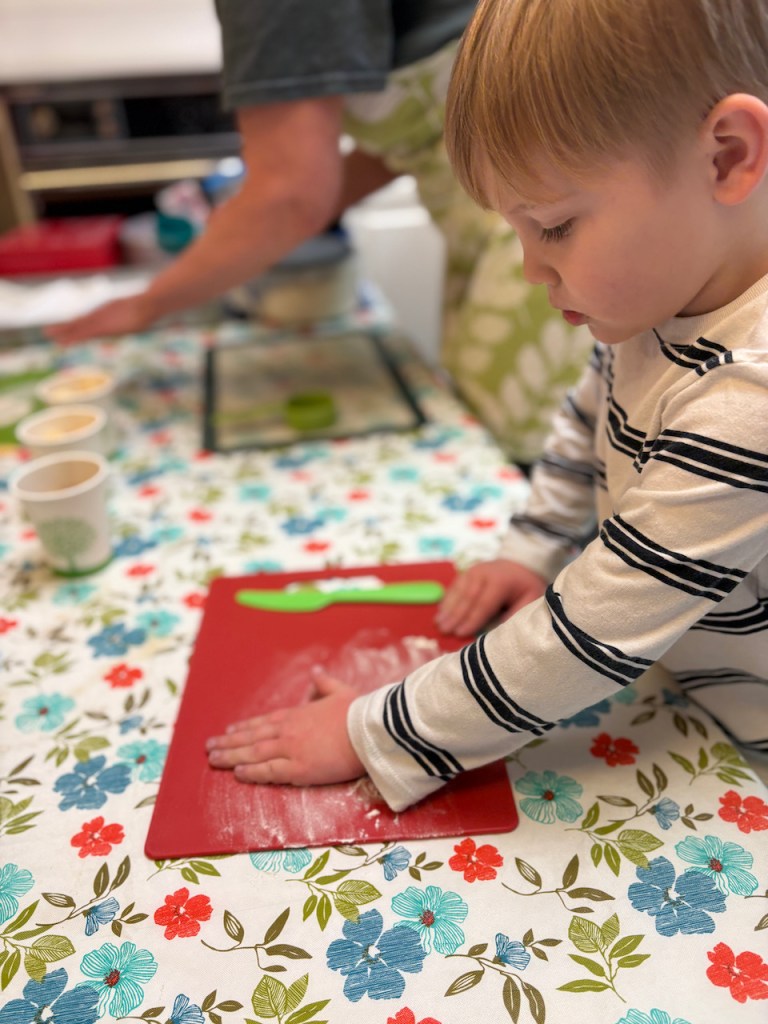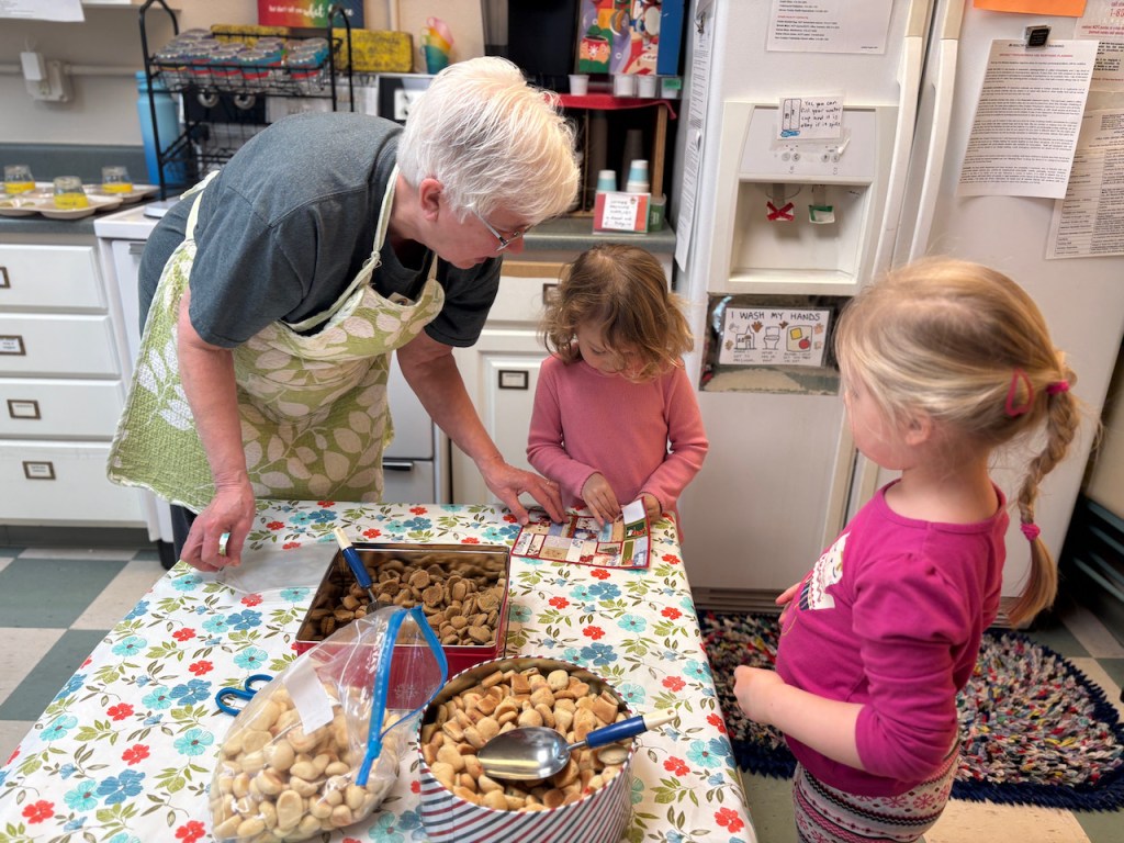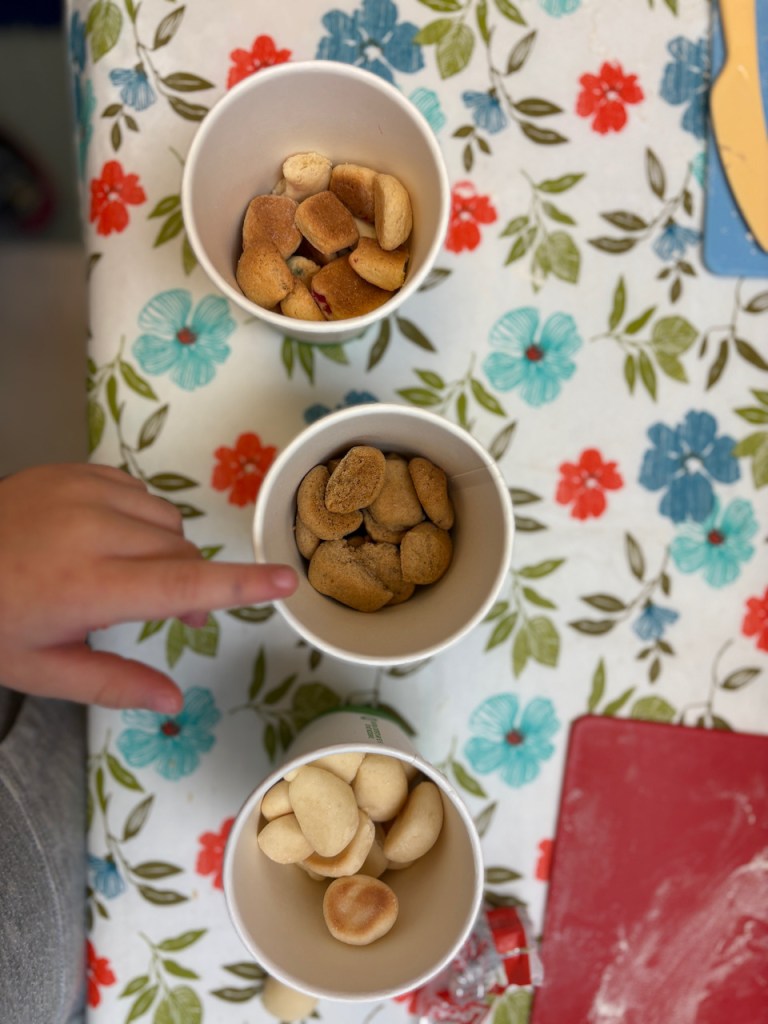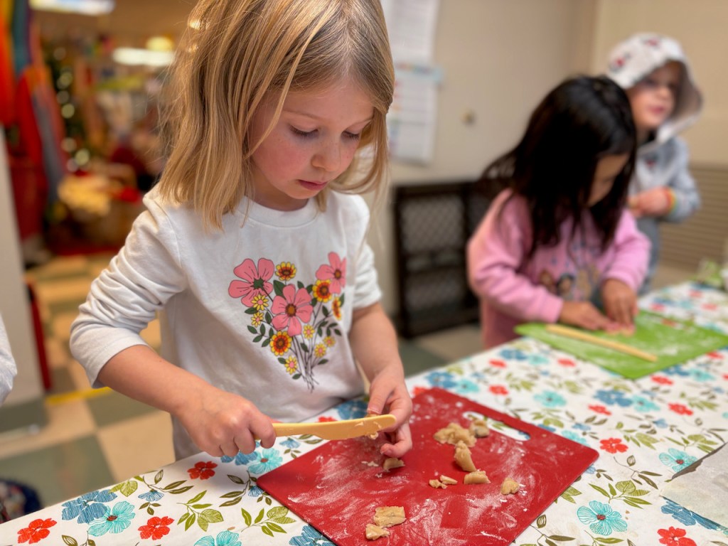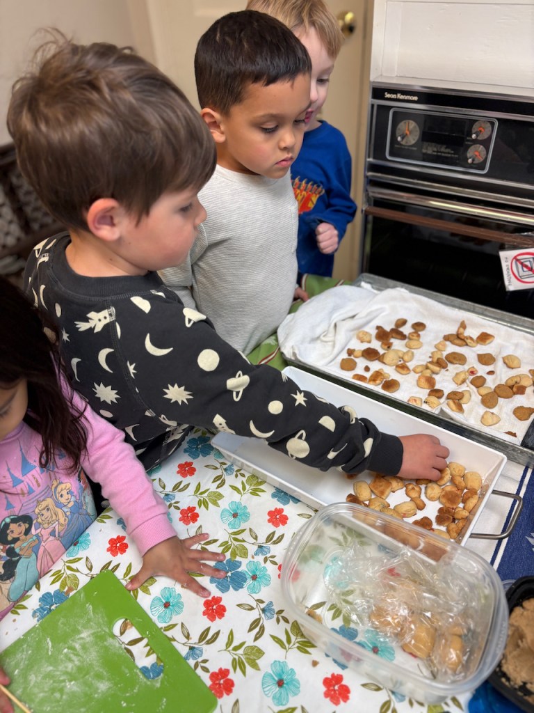 Who worked in the kitchen all day? Grandma Bonnie! She helped each child roll, cut and bake 3 kinds of cookies plus an egg free version. Check your backpack for a bag sent home for you to taste! Thank you, Grandma Bonnie for “being so nice in the kitchen and letting us taste the ones we just baked and letting us help with every part of it except touching the hot pans.”