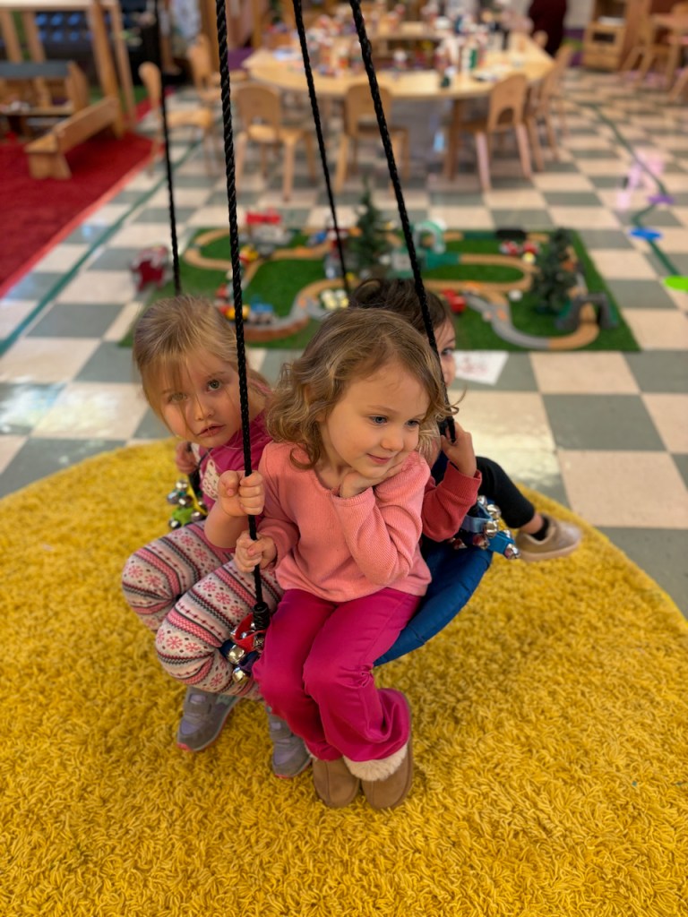 These children already practice listening to teachers and peers every day. Now we are pausing to listen to things in our environment. This is a quick way to be in the present moment and increase calm….especially when taking time to notice 3 sounds in the environment and name them (a car driving by, a fan, my own breath).