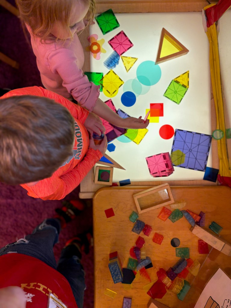 Light Table: There are new transparent blocks at the Light Table this week. We can see colors mix when pieces are on top of each other.