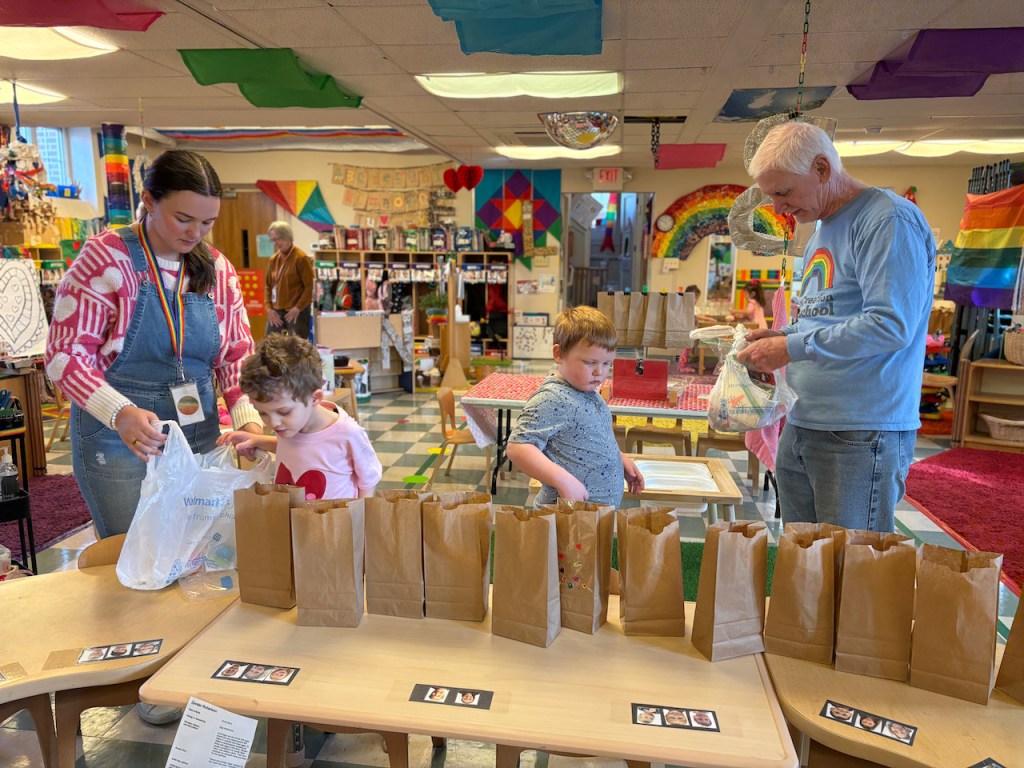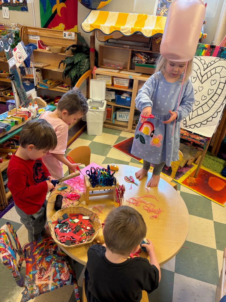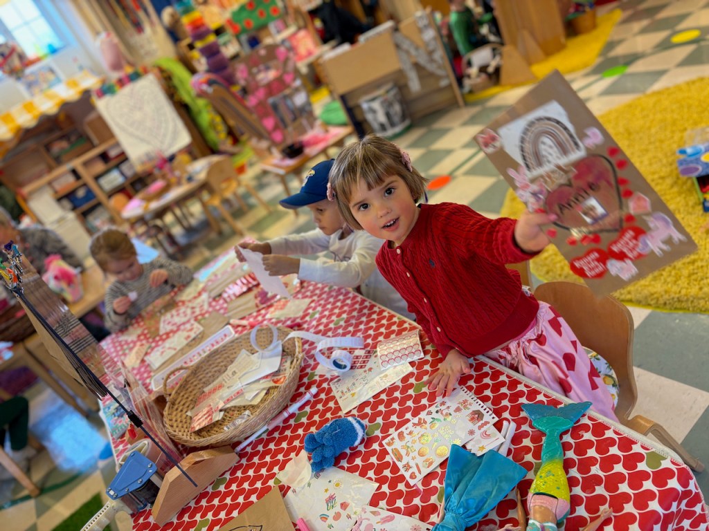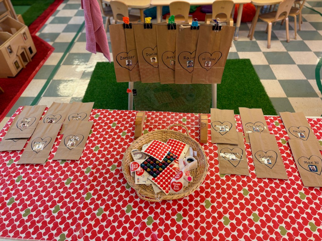 The children had a wide array of stickers, tape, markers and crayons to make their bags their own! In keeping with our tradition of celebrating Valentine’s Day, we all have a Valentine Bag and began decorating them today. Some children took their valentines home today and some will get them the next time they come.