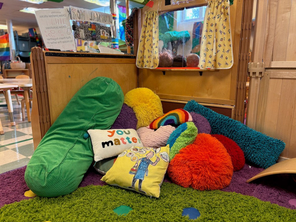 Our Coping Skill is Pillow Time. It can be helpful for figuring out what our bodies need in a certain moment by picking up a pillow…notice does it feel good on your belly or to squeeze or to hold? During Circle Time we talked about pillows we have at home…read more below.