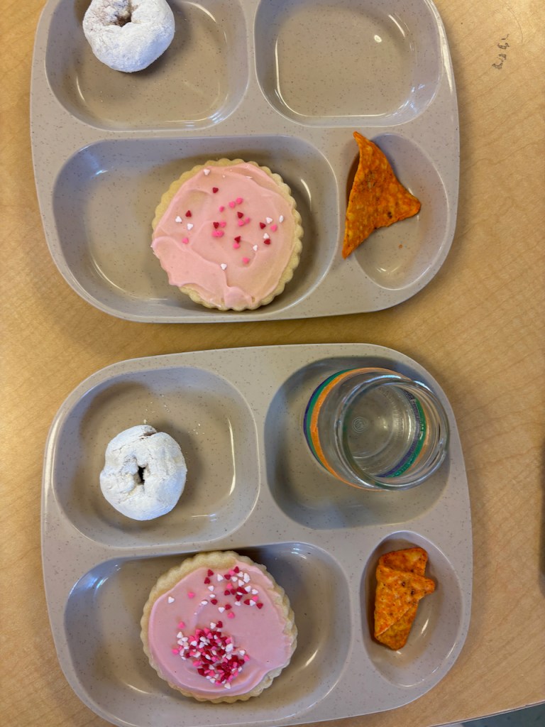 Afternoon class: Thank you to Scarlet for bringing white donuts, Zander for bringing red Doritos and Cade for bringing pink sugar cookies that he made! We had stores for everything!