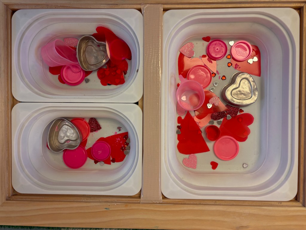 It was the last day for our Clean Up Song, Skinnamarink. We have some sweet actions we like to do as well as hit that high note on “mooooon” while we clean. Since it is our preschool love song, we’ll still be singing it all month.
